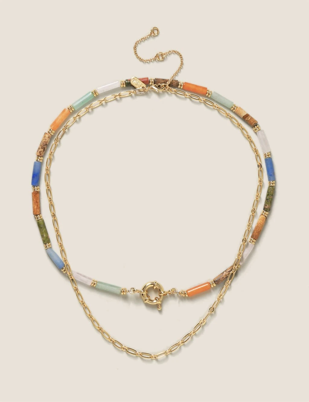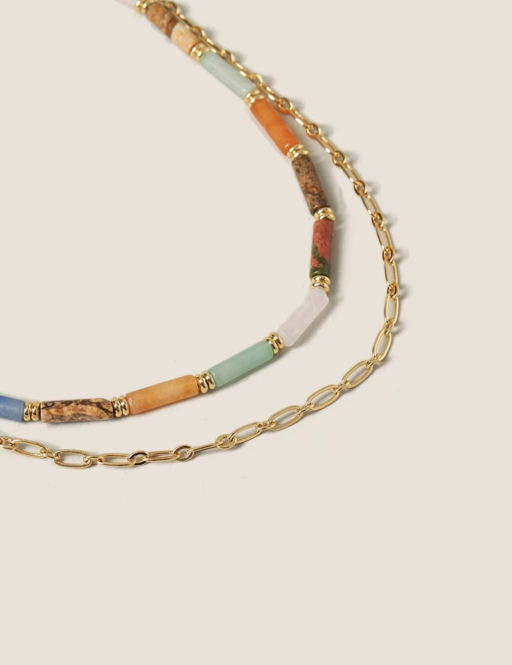 Expect the compliments this summer with this 14ct gold plated semi precious multirow necklace