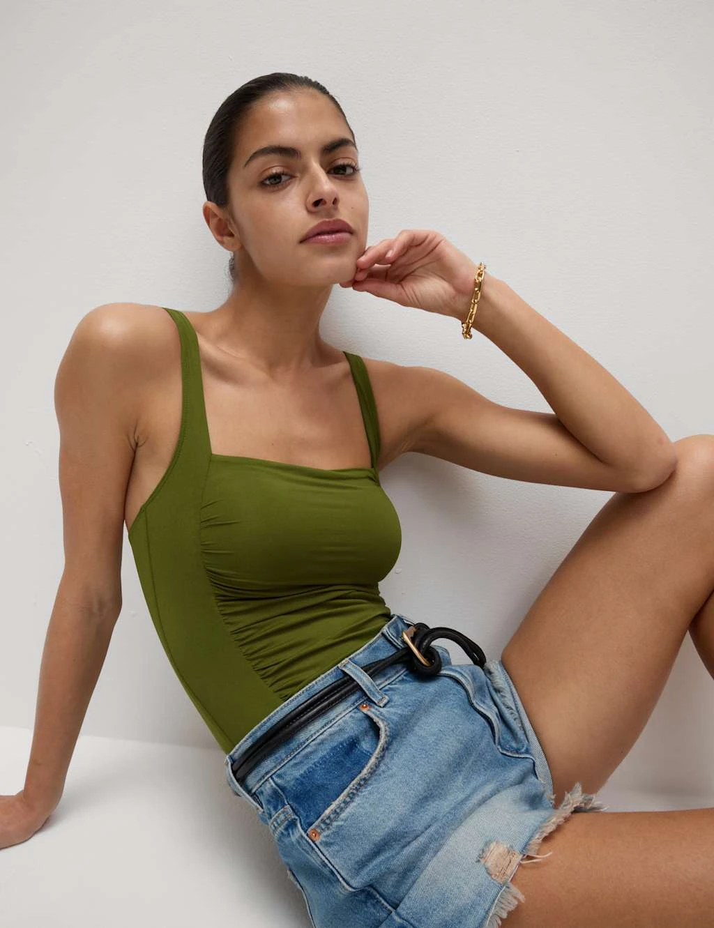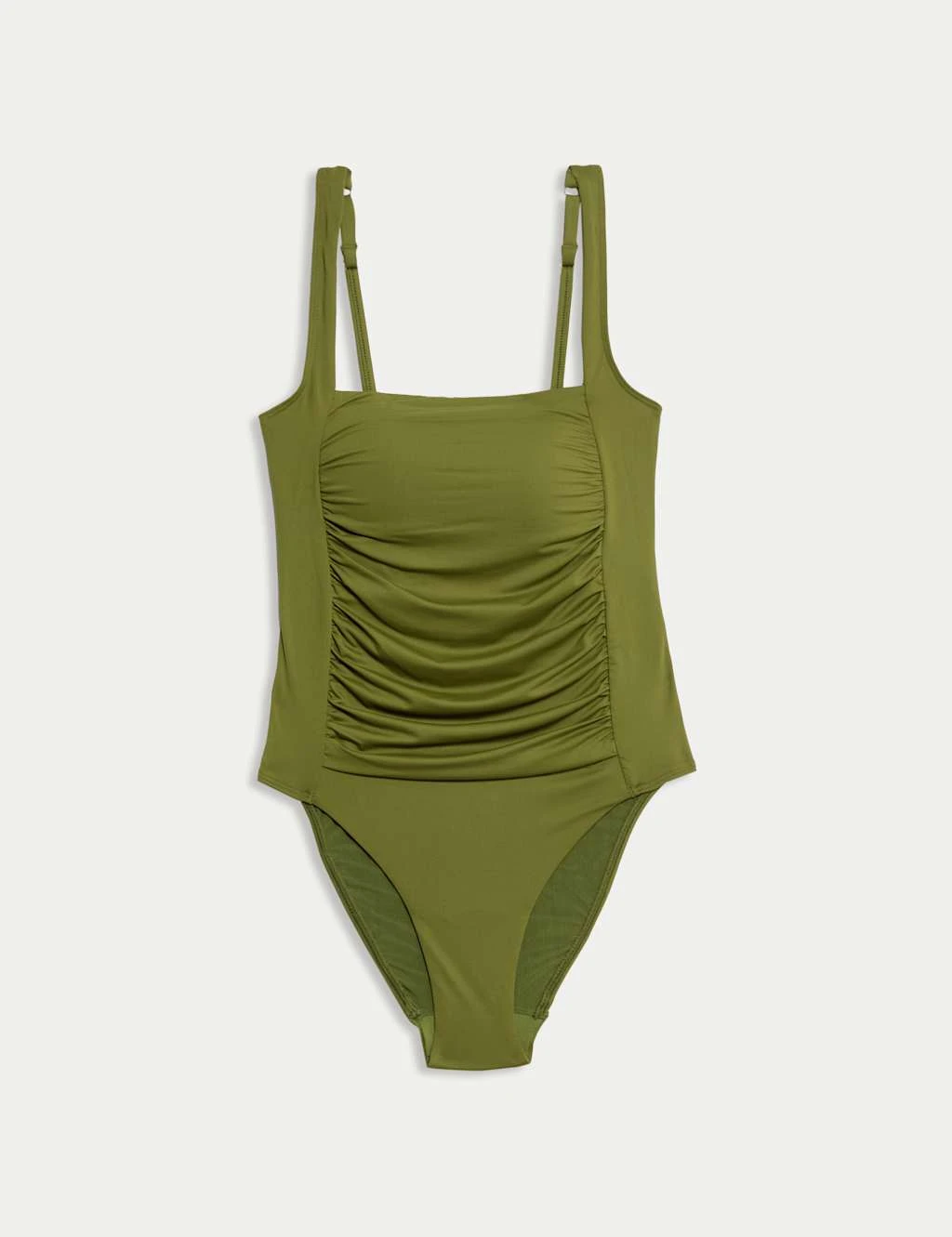 Feel your confident best by the pool or the sea in this stylish square-necked swimsuit. Comfy regular fit, with a discreet front panel made from power mesh to hold and sculpt your figure. Enhanced with ruched detailing for a flattering look. The unwired cups are padded for a smooth outline and the shoulder straps are adjustable for the perfect fit. Added stretch in the material ensures plenty of comfort. M&S Collection: versatile styles in modern shapes with unique and playful details.
