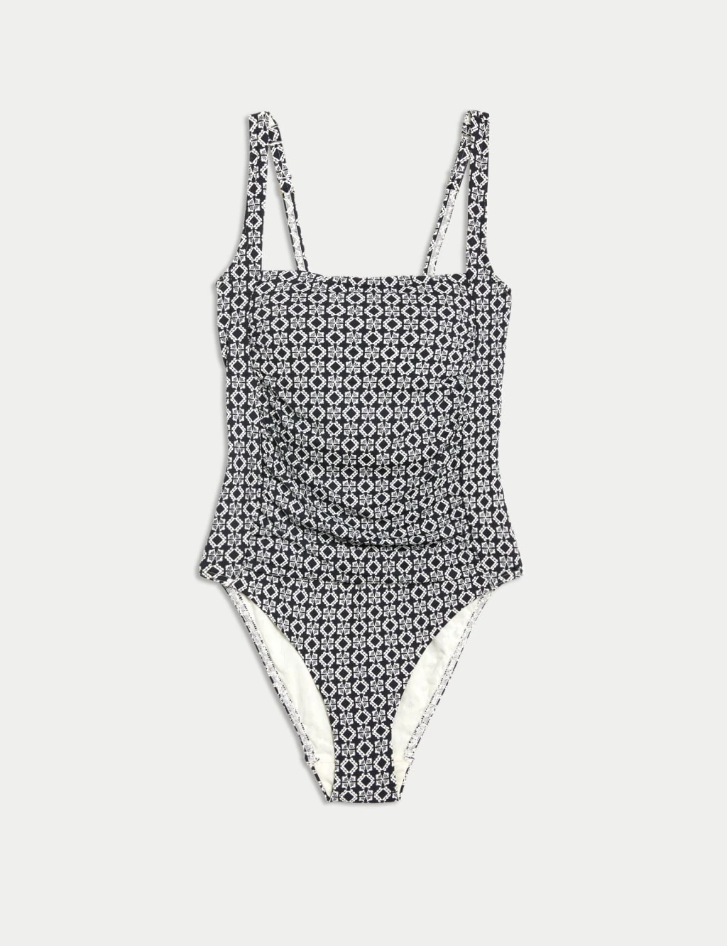 This printed swimsuit from our Magicwear collection features a tummy control panel for a smooth shape. It’s crafted to a flattering regular fit, with a square neck, adjustable straps and added stretch for easy movement. The fabric has built-in Sun Smart UPF50+ protection and is chlorine-resistant to help prevent sagging and fading. M&S Collection: versatile styles in modern shapes with unique and playful details.