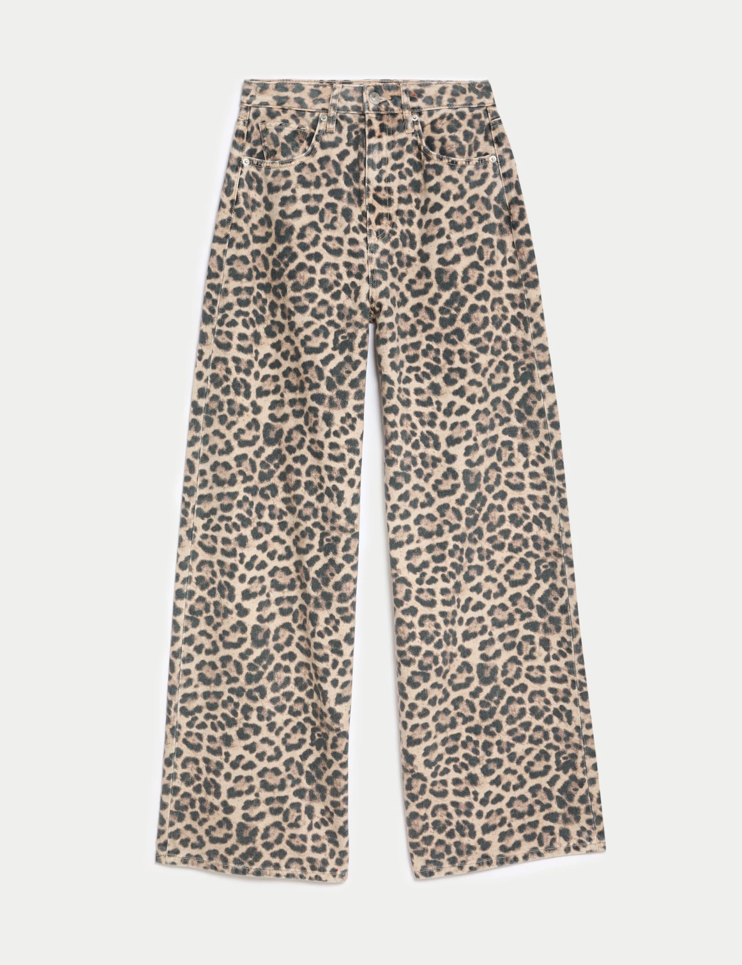 With their statement animal print, these pure cotton jeans are a standout piece for your casual wardrobe. Wide leg style, with an on-trend high waistline. Five-pocket styling provides plenty of storage, while a button and zip fastening ensures a neat finish. M&S Collection: easy-to-wear wardrobe staples that combine classic and contemporary styles.