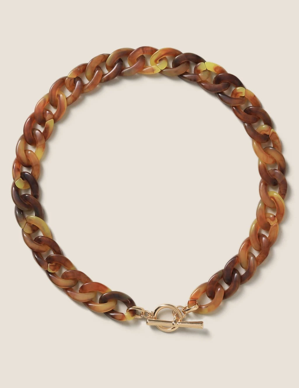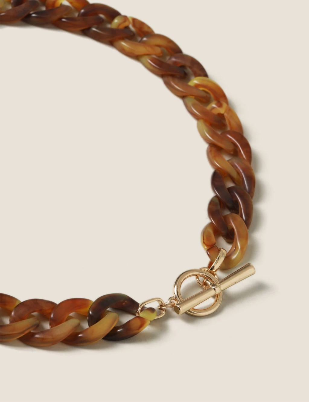 This short link brown resin necklace with chunky link detailing to upgrade any outfit
