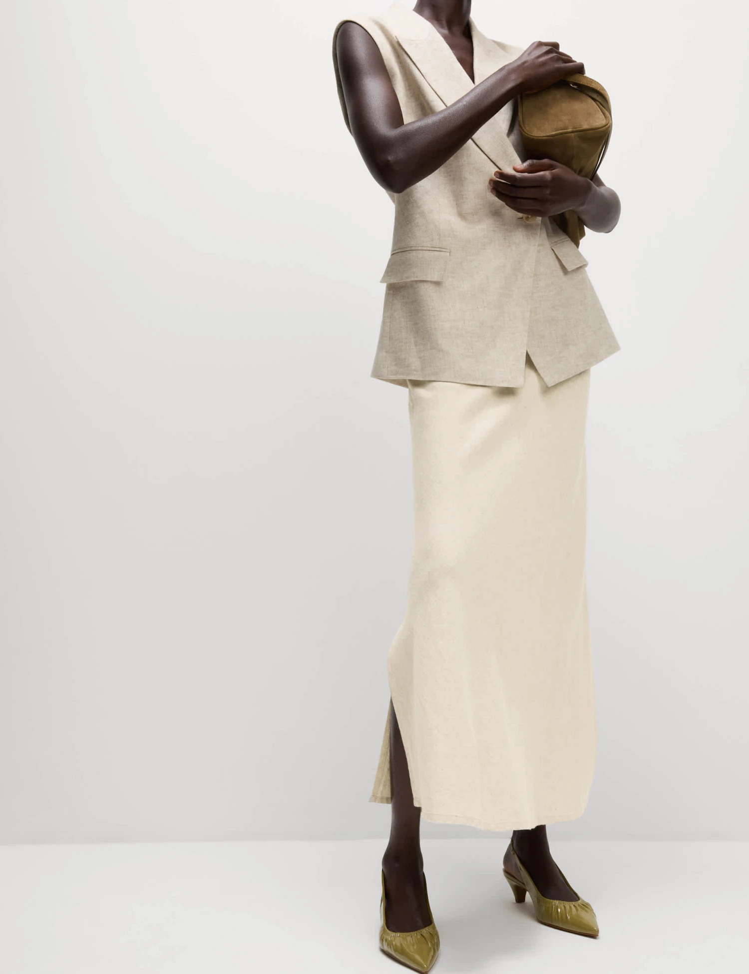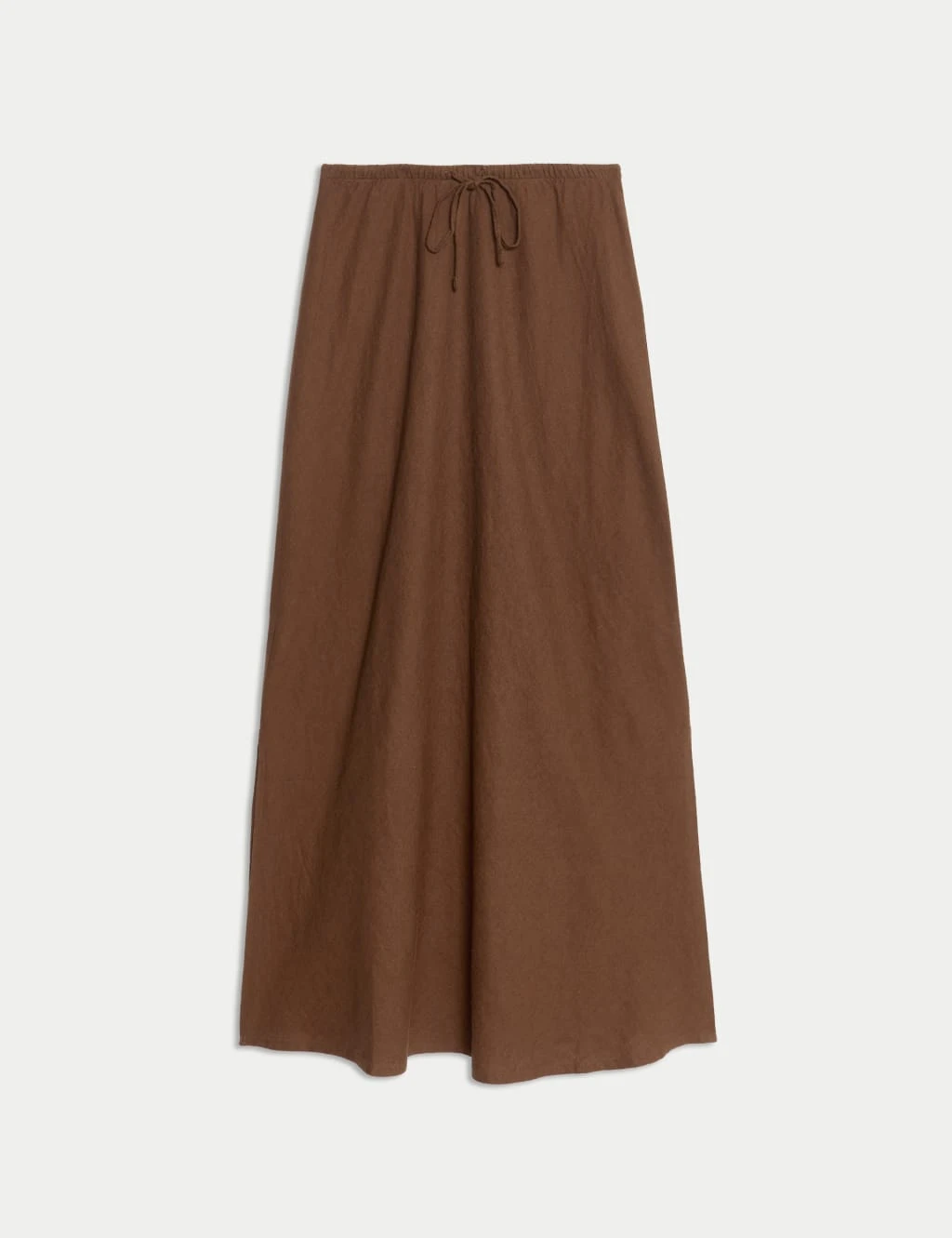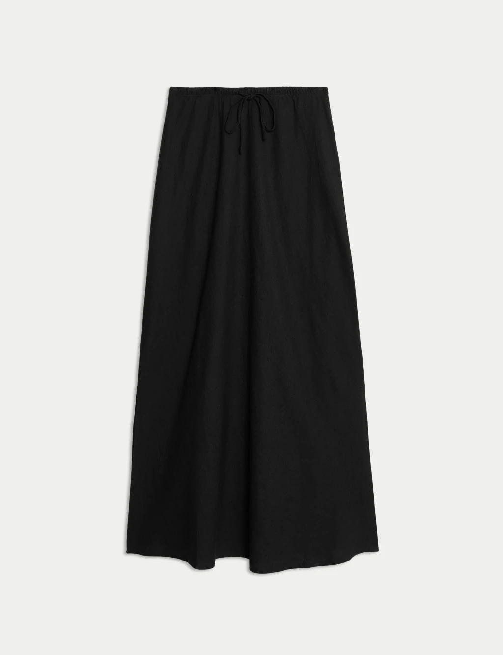 With its graceful bias cut, this linen-rich maxi skirt creates a slinky silhouette. Designed in a flattering regular fit with an A-line shape, it features a stylish side split for added movement. The elasticated high waist ensures both comfort and practicality.M&S Collection: easy-to-wear wardrobe staples that combine classic and contemporary styles.