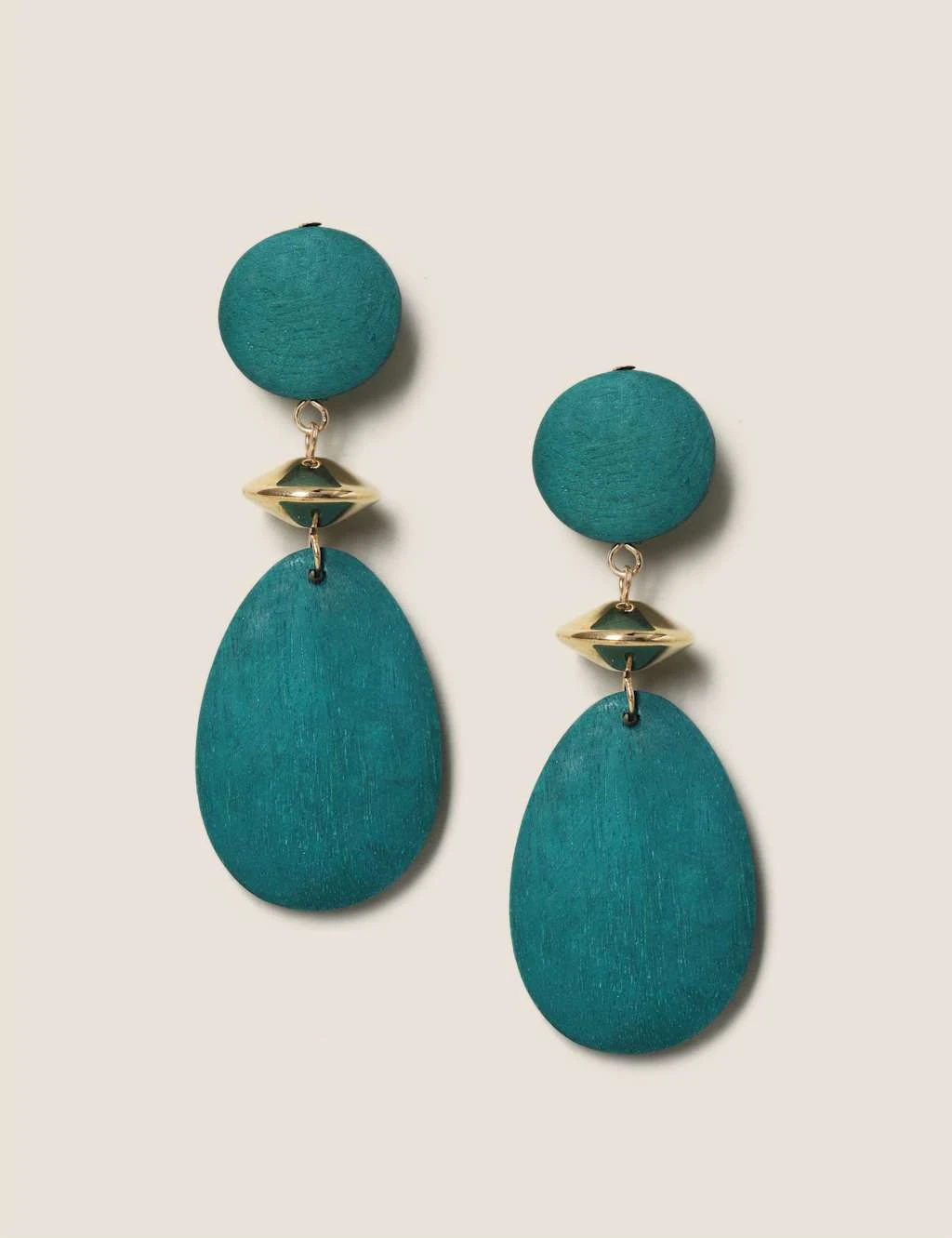These Turquoise wood effect drop earrings with Gold accents in-between to create an eye catching accessory