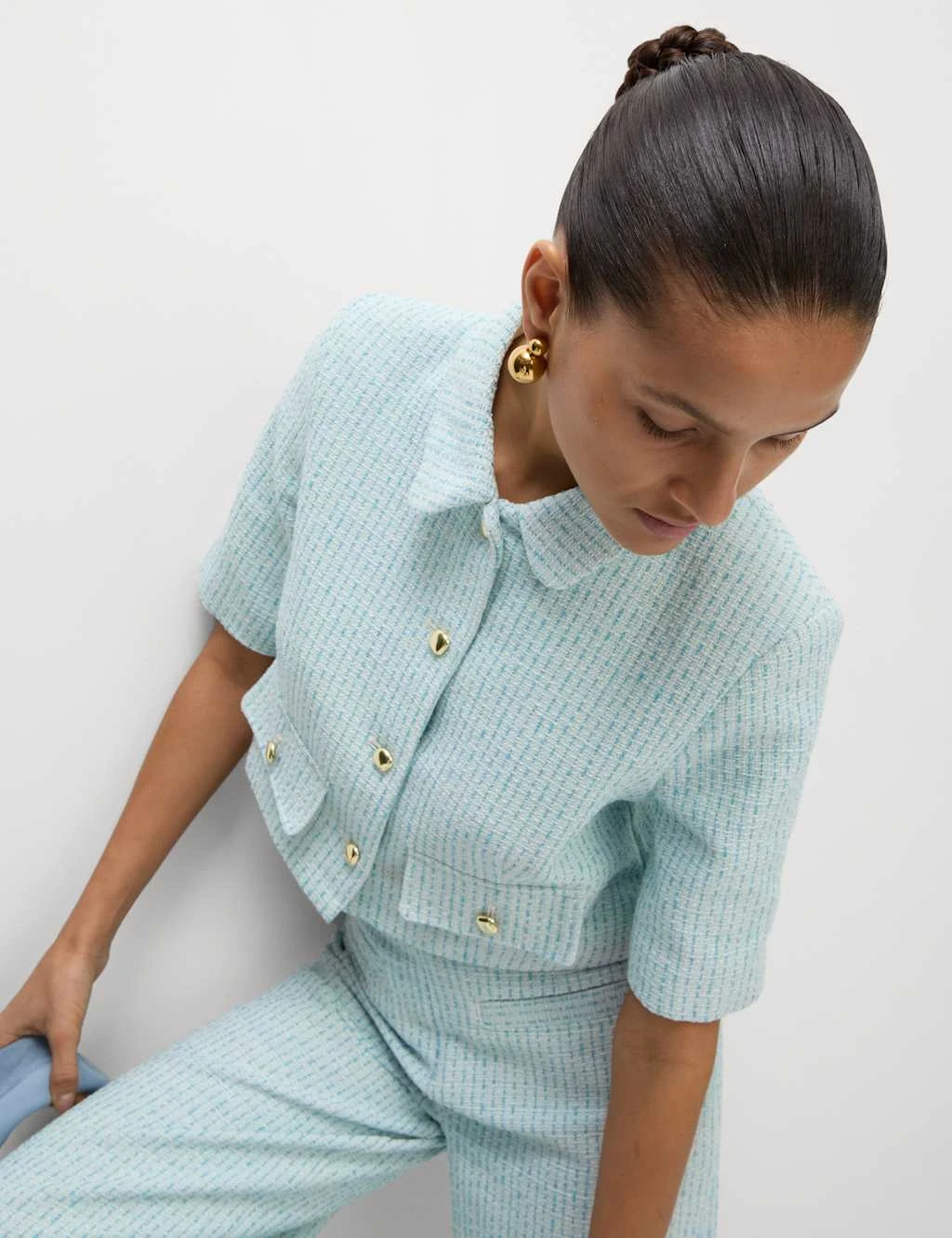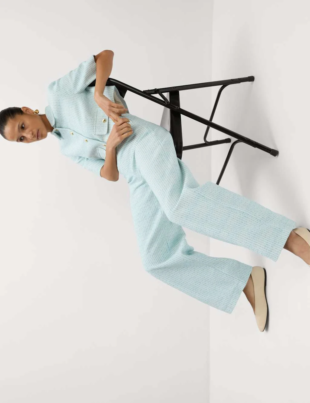 Update your collection with these bouclé tweed trousers. Modern wide-leg fit, featuring a flattering high waist and an all-over textured pattern to create a timeless look. Two side pockets add a handy touch, while two front mock pockets provide the finish. M&S Collection: easy-to-wear wardrobe staples that combine classic and contemporary styles.