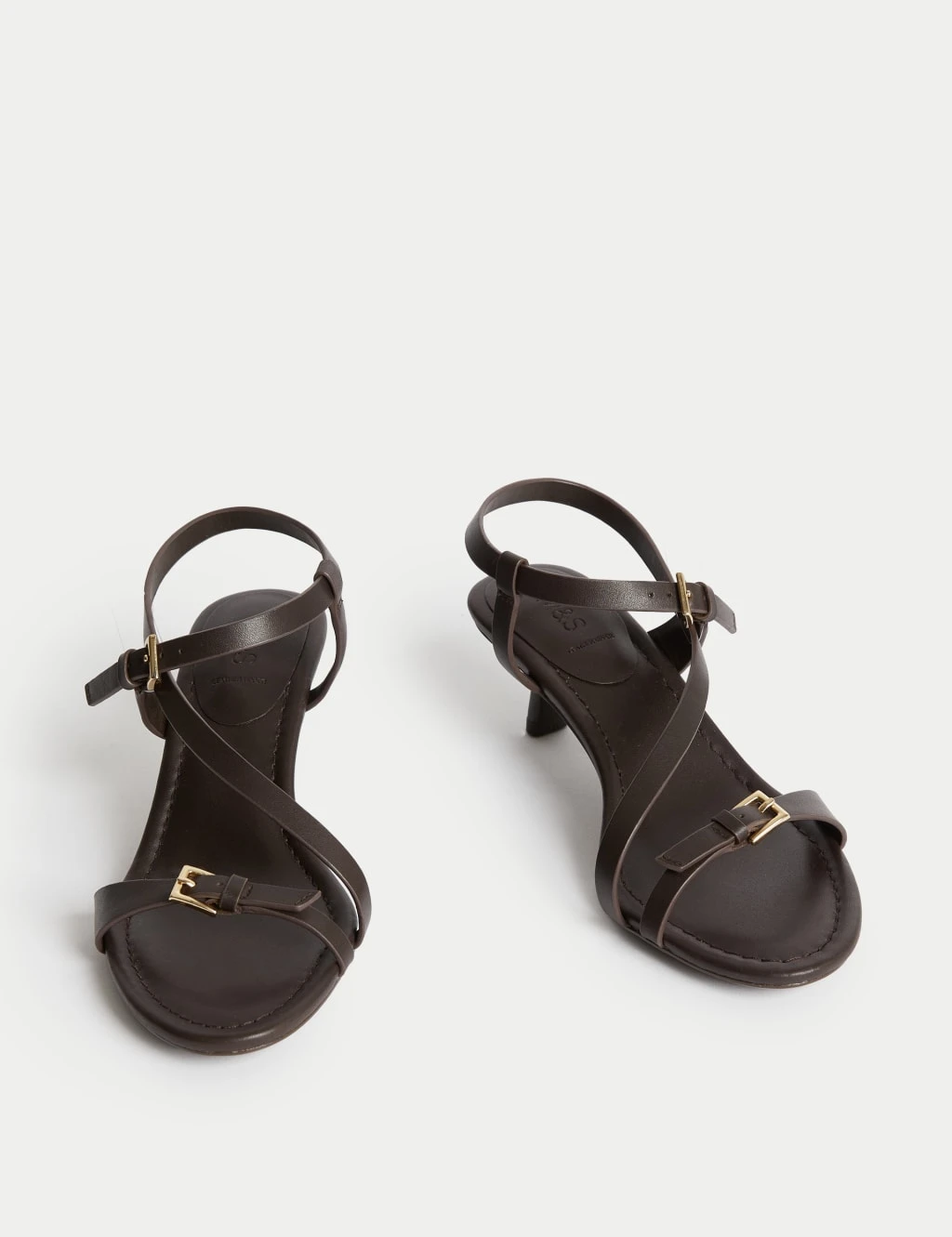 These leather sandals are a versatile addition to your warm weather wardrobe. They have a mid-height kitten heel and a square open toe for a contemporary silhouette. Adjustable buckles on the slender ankle and front straps ensure a comfortable fit. M&S Collection: easy-to-wear wardrobe staples that combine classic and contemporary styles.