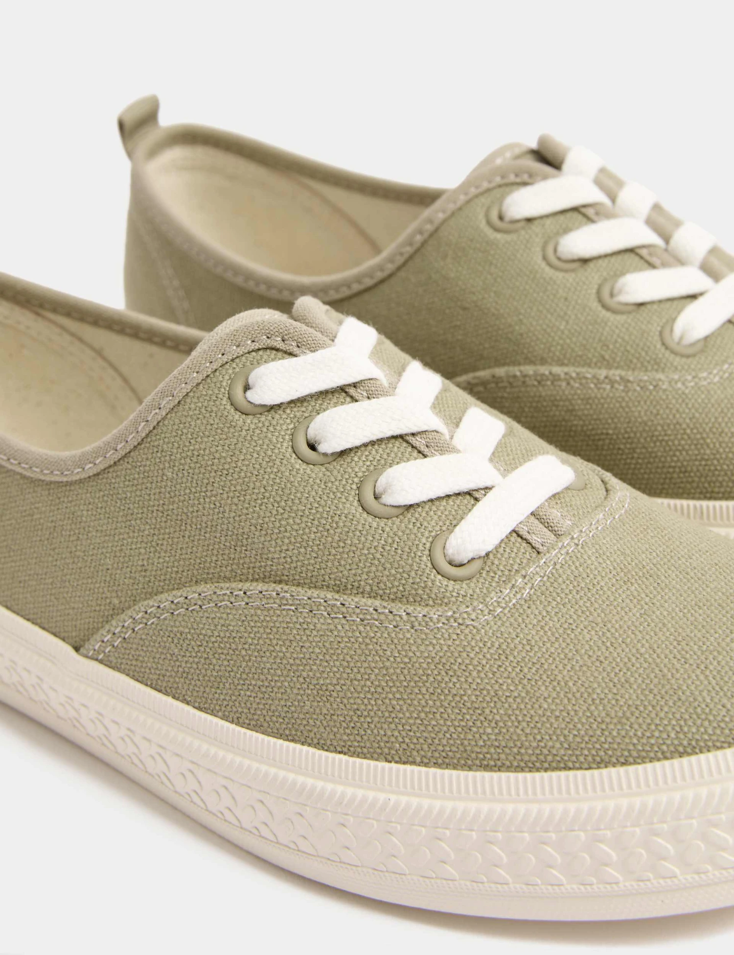 These timeless canvas trainers are a versatile addition to your casual footwear collection. Featuring a classic lace-up design with contrast stitching and a cleated sole. Our antibacterial Freshfeet™ technology keeps feet fresh by combating odours. M&S Collection: easy-to-wear wardrobe staples that combine classic and contemporary styles.