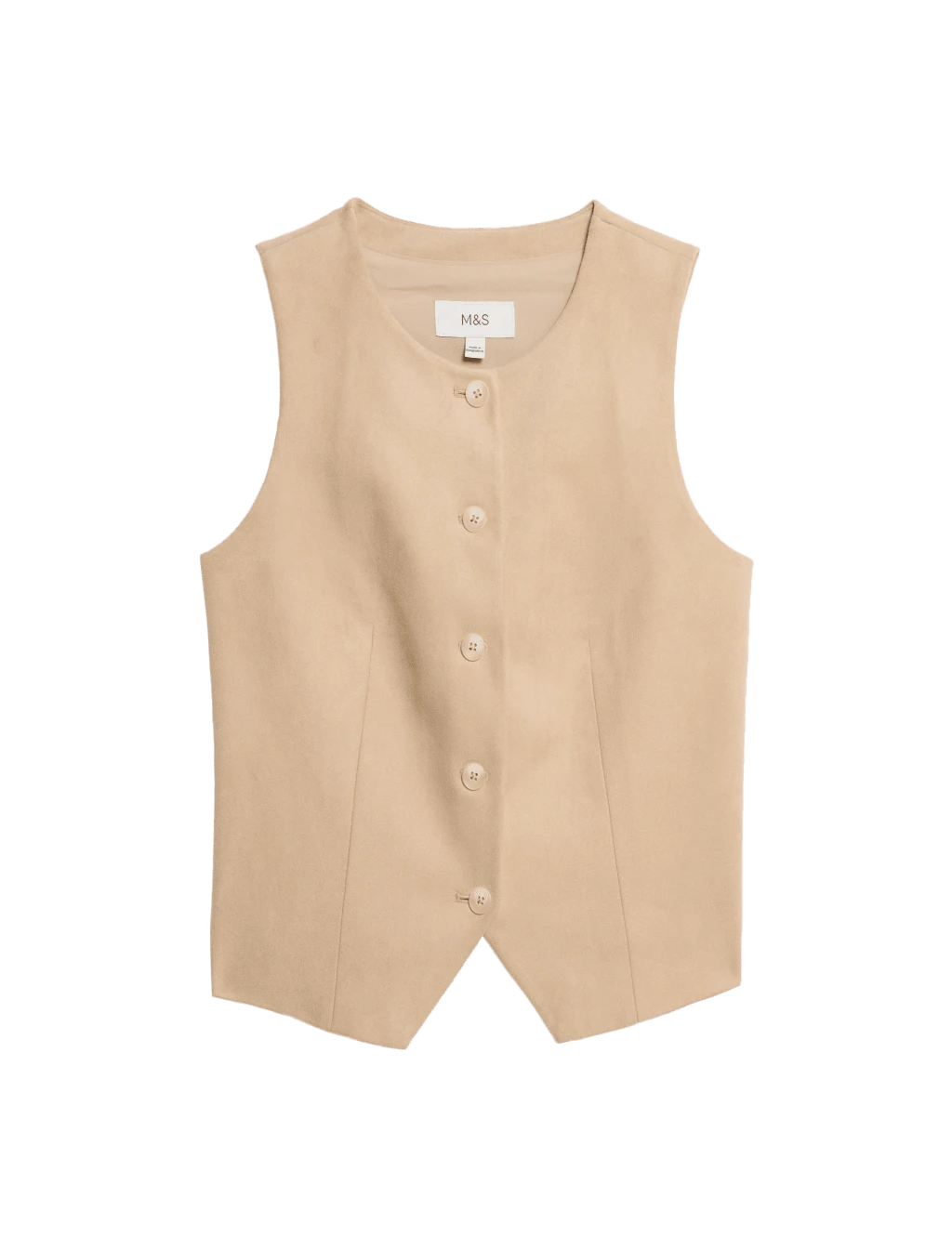 This suedette waistcoat will add a touch of boho style to your outfits. It’s designed in a regular fit, with added stretch for comfort. The collarless piece fastens with a row of buttons, while two patch pockets on the front add a practical touch. M&S Collection: easy-to-wear wardrobe staples that combine classic and contemporary styles.