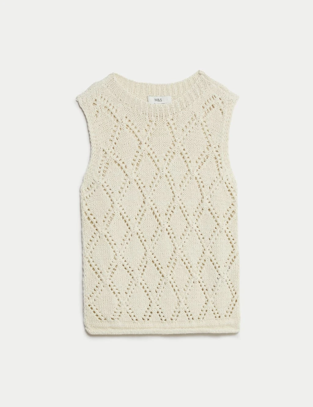 This cotton-blend knitted vest is a stylish pick for transitional dressing. It comes in a flattering slim fit, with a timeless crew neckline. The diamond stitch design adds a touch of texture with a classic feel. A rolled trim at the hem adds a considered finishing touch. M&S Collection: easy-to-wear wardrobe staples that combine classic and contemporary styles.