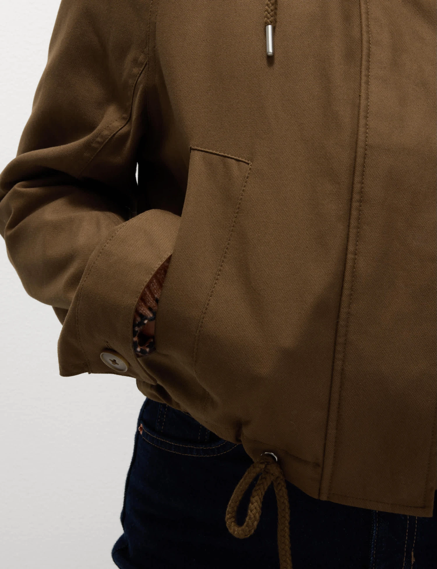 60% cotton, 40% polyester (exclusive of trimmings) , Body lining – 65% polyester, 35% cotton, Sleeve lining – 100% polyester