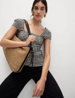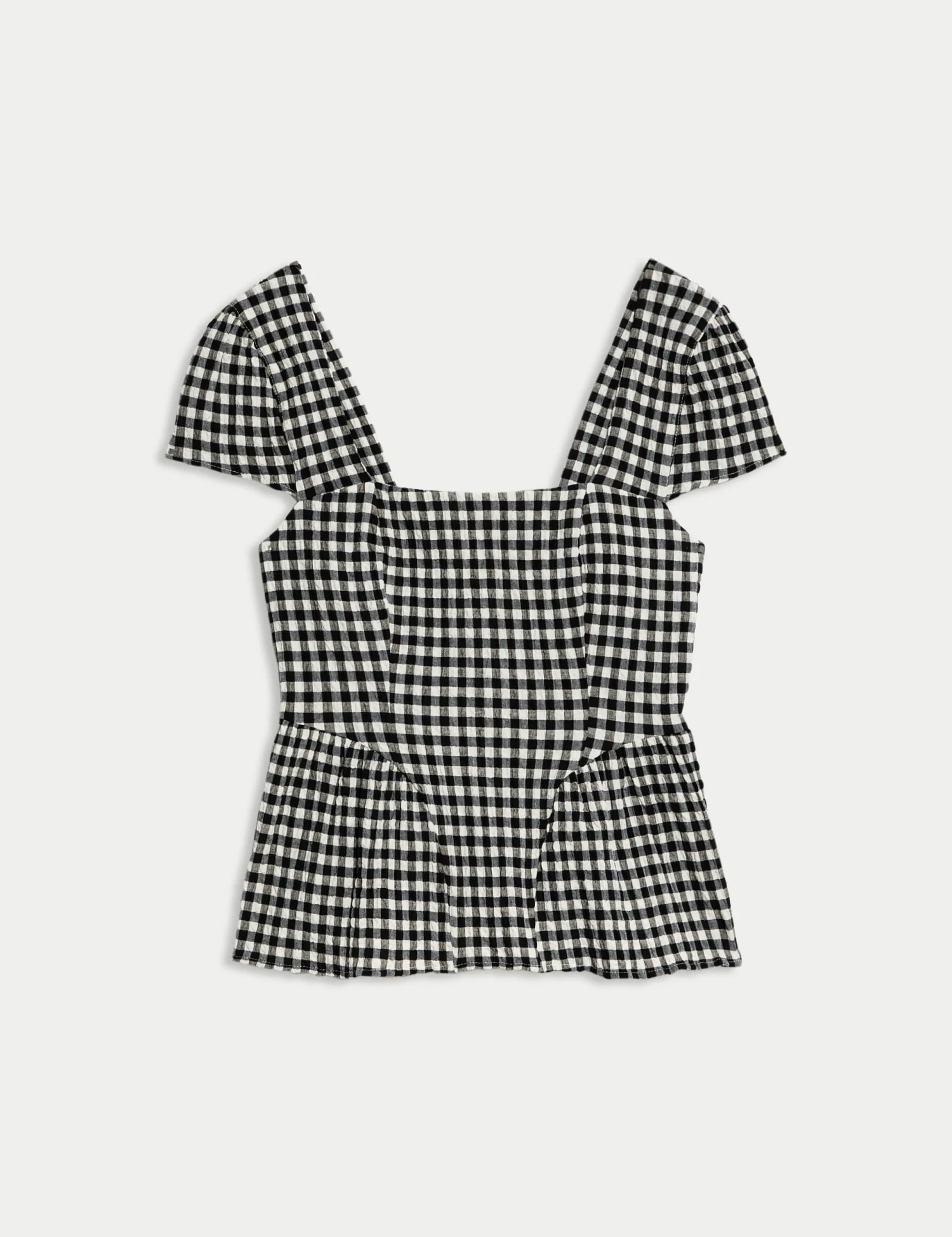 This cotton-rich top is a versatile addition to your warm weather wardrobe. It’s designed in a flattering regular fit, with added stretch for comfort. The square neckline and cap sleeves create an elegant silhouette. A timeless checked pattern completes the look. M&S Collection: easy-to-wear wardrobe staples that combine classic and contemporary styles.