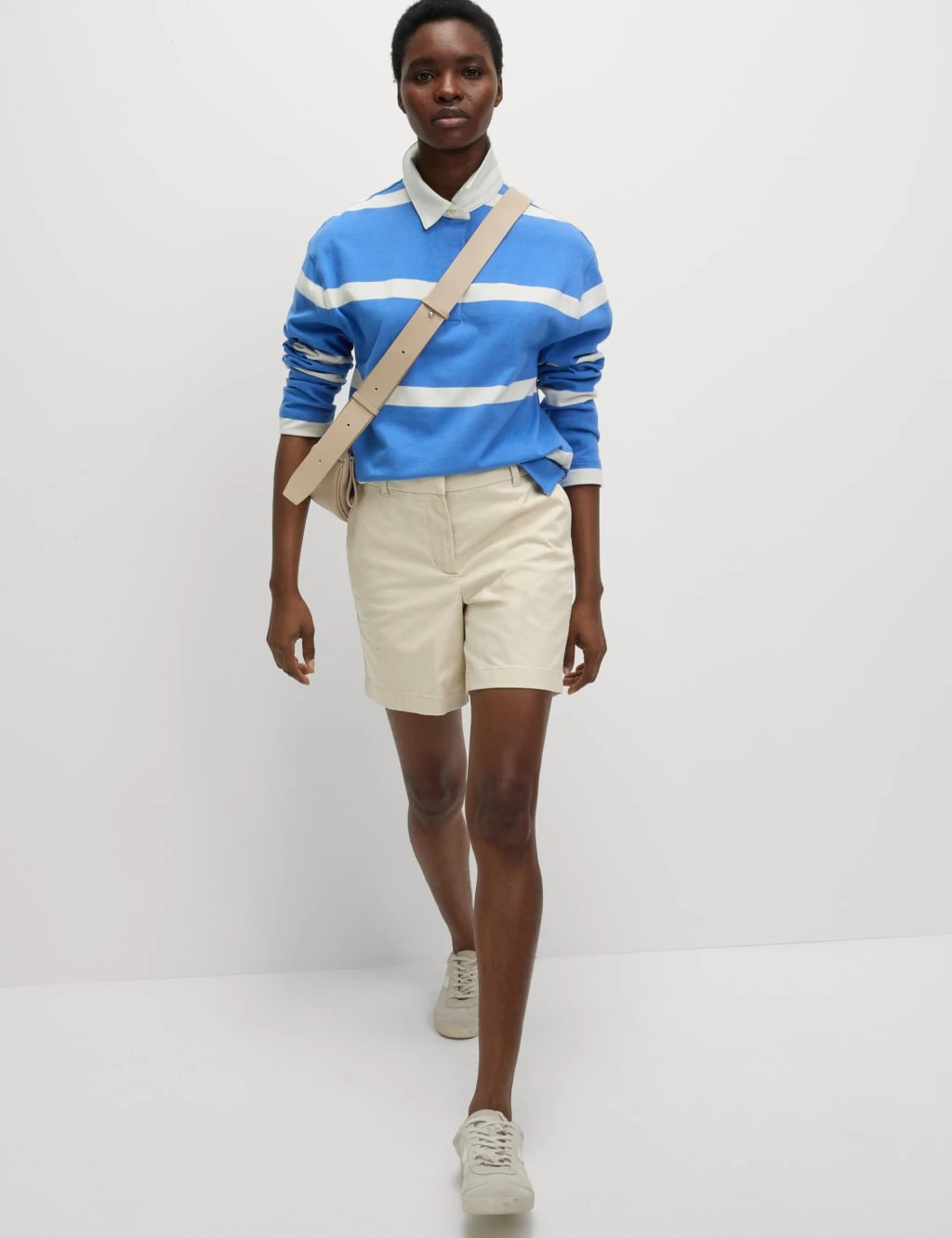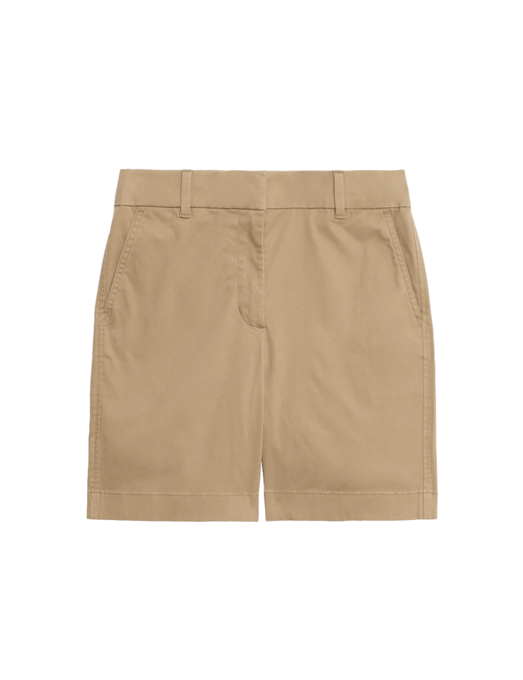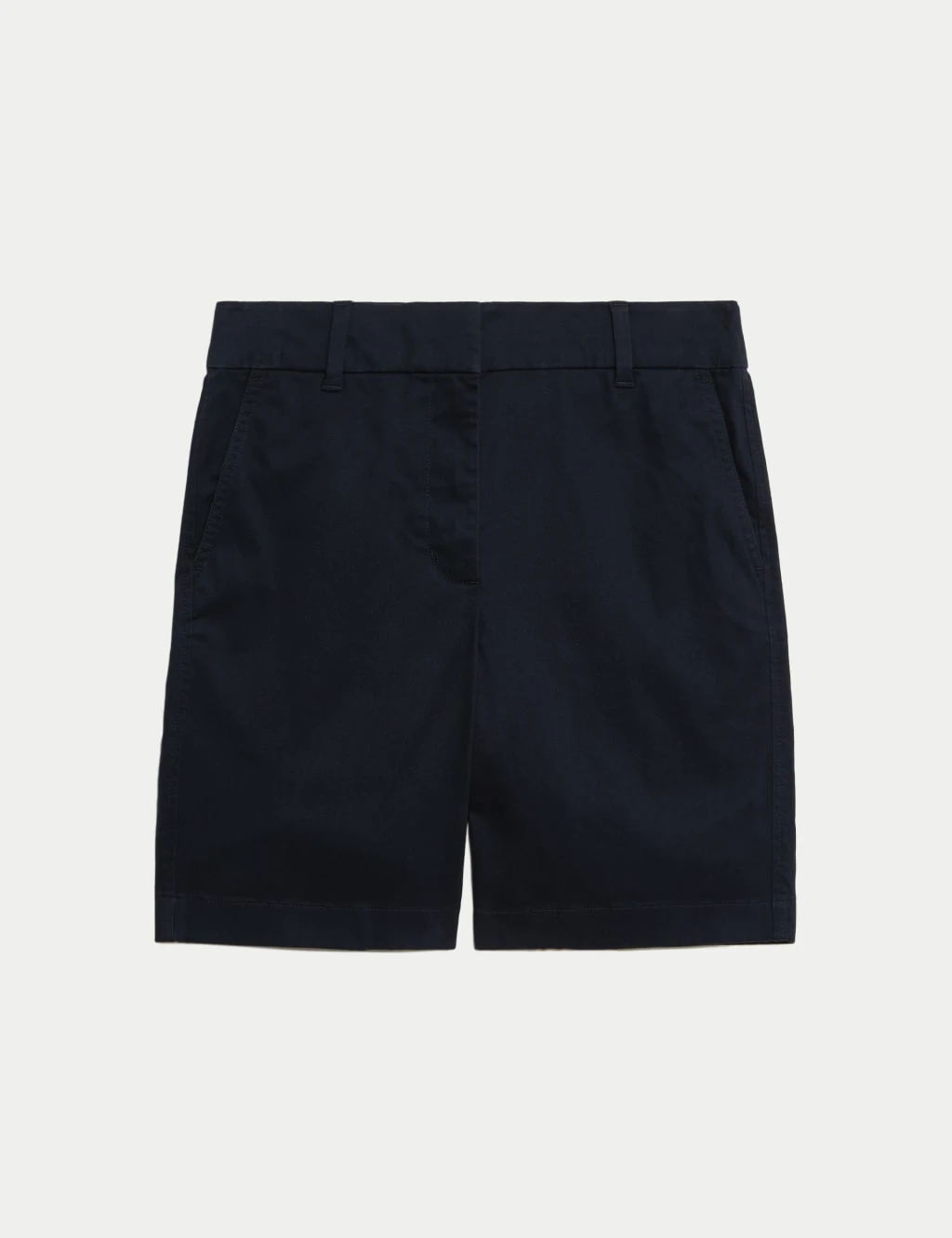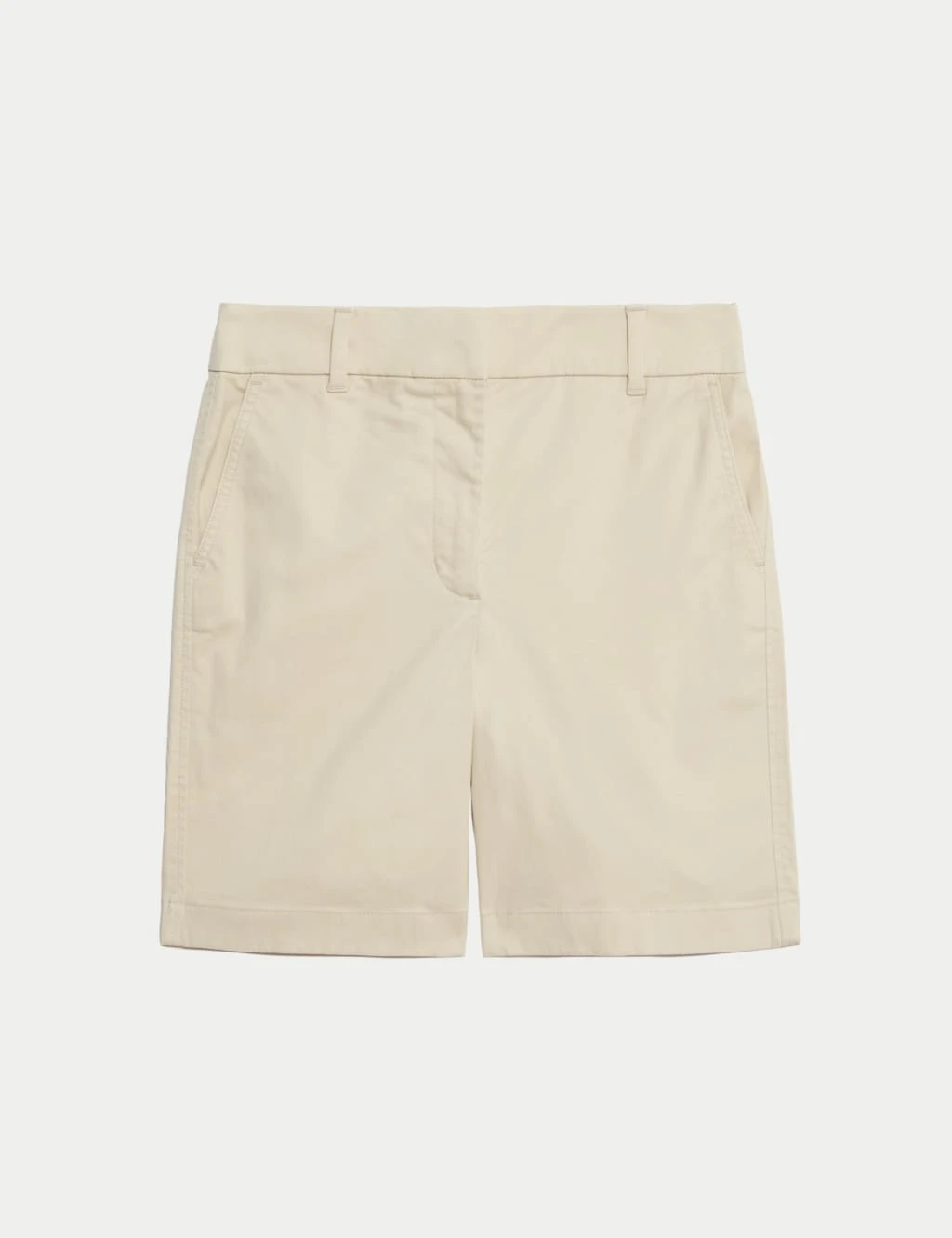 With their cotton-rich fabric and added stretch, these chino shorts are a comfy choice for warm days. The design features a flattering mid-rise waist and a concealed hook, bar and zip fastening for a tailored look. Belt loops and two side pockets add practical touches to this summer-ready style. M&S Collection: easy-to-wear wardrobe staples that combine classic and contemporary styles.