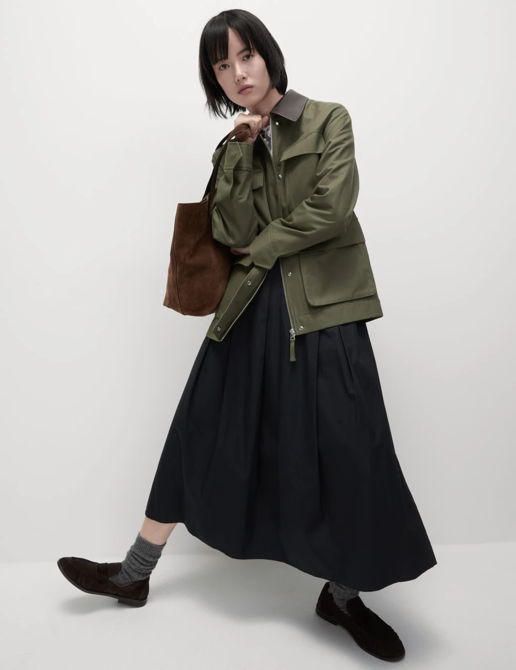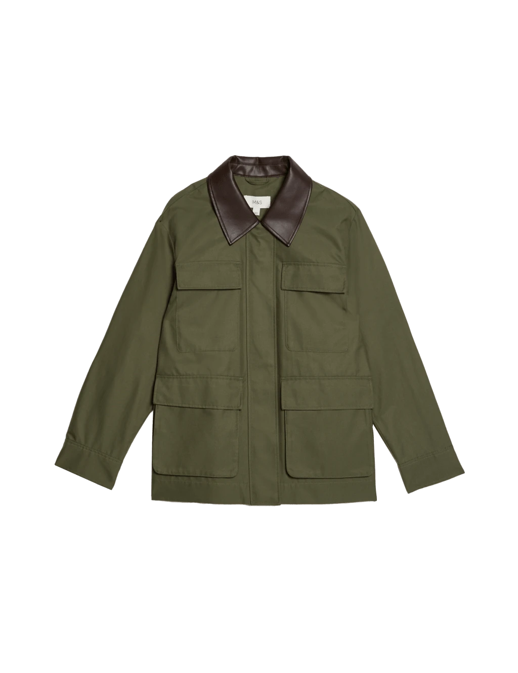 This utility jacket combines a heritage-inspired look with a contemporary shape and perfectly practical details. It’s made to an easy regular fit, with a short, boxy silhouette and a concealed zip and popper-fastening front. Our water-repellent Stormwear™ finish helps to protect you from light rain showers. A leather-look PU collar adds a sleek finish, while the four flap pockets offer plenty of storage. M&S Collection: easy-to-wear wardrobe staples that combine classic and contemporary styles.