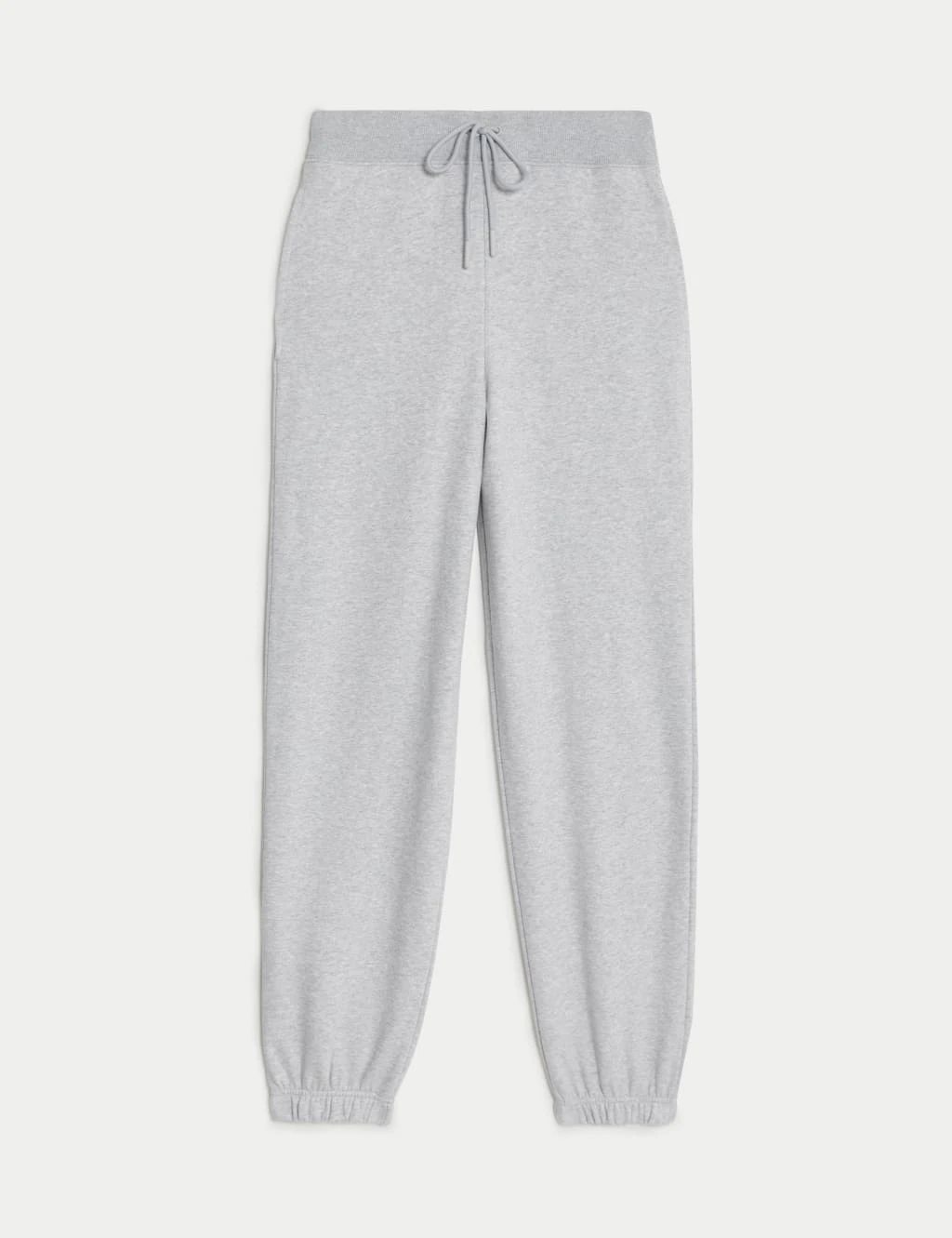 Refresh your collection of athleisure separates with these cotton-rich joggers. The comfy style has elasticated cuffs and a high-raise waist for a flattering, timeless silhouette. Rib-knit waistband features an adjustable drawstring. Brushed back fabric keeps things cosy. Two handy pockets finish the look. M&S Collection: easy-to-wear wardrobe staples that combine classic and contemporary styles.
