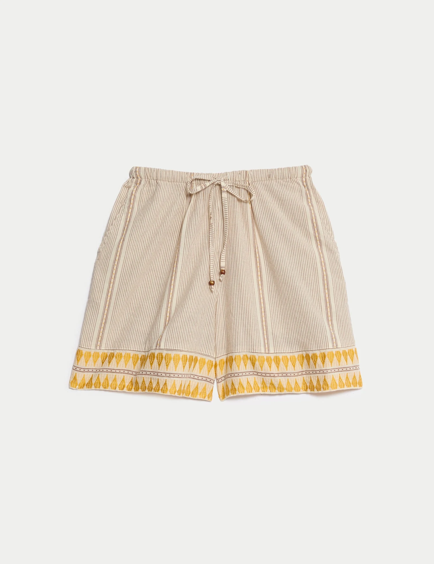 These cotton-rich shorts are a striking addition to your beachwear wardrobe. They’re designed in a regular fit, with a drawstring fastening for comfy wear and two side slip pockets. A jacquard pattern and beads on the tie add elevated detail.M&S Collection: easy-to-wear wardrobe staples that combine classic and contemporary styles.