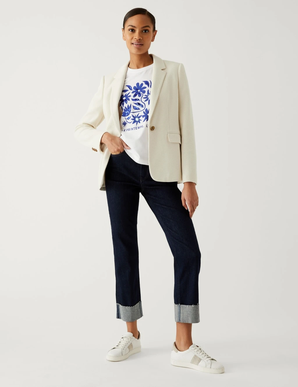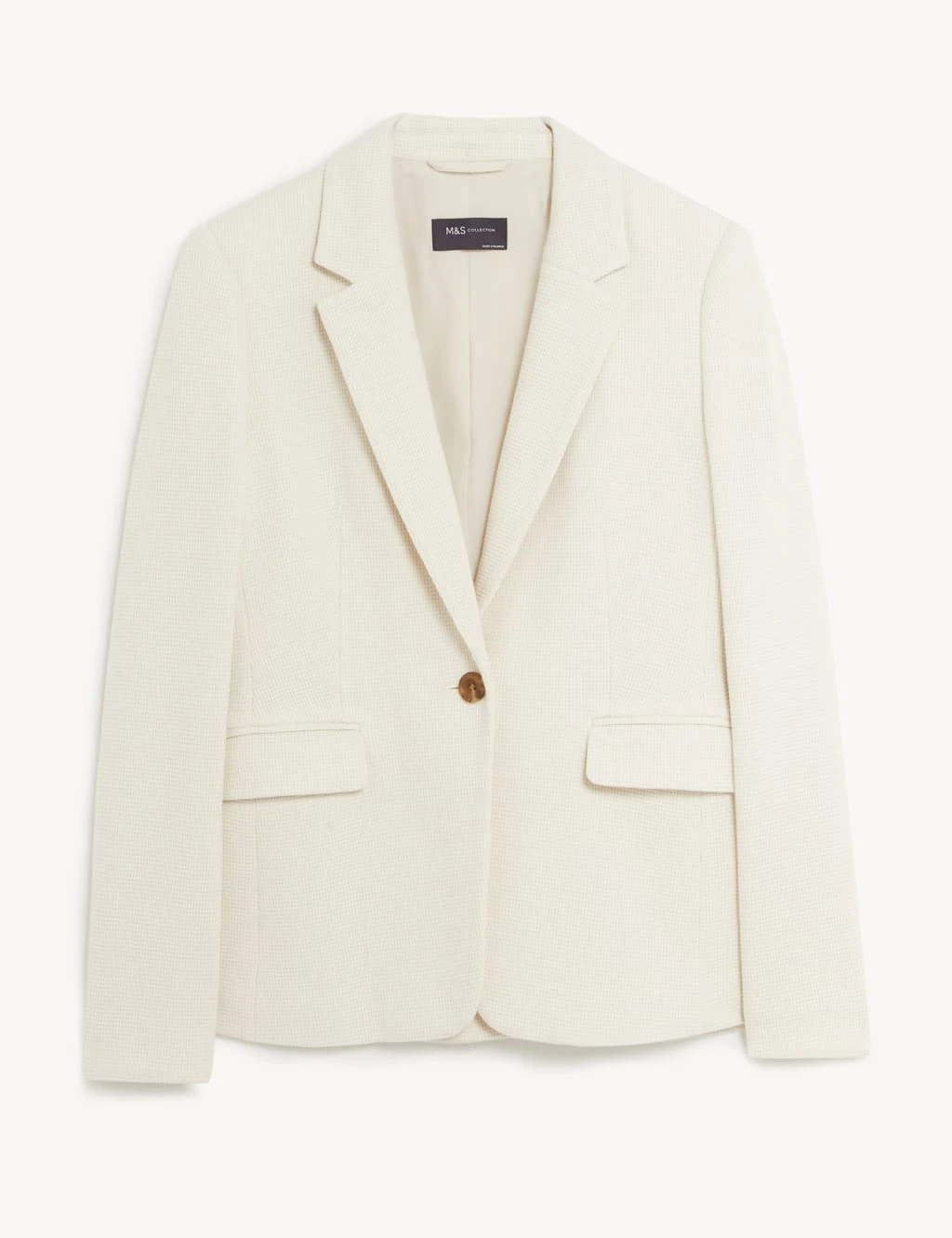 Made from cotton-rich textured jersey, this blazer adds a smart finish to your outfit. This single breasted design is cut in a flattering slim fit and fastens with a neat button. It’s fully lined for a comfortable feel and finished with two flap pockets for a timeless look.