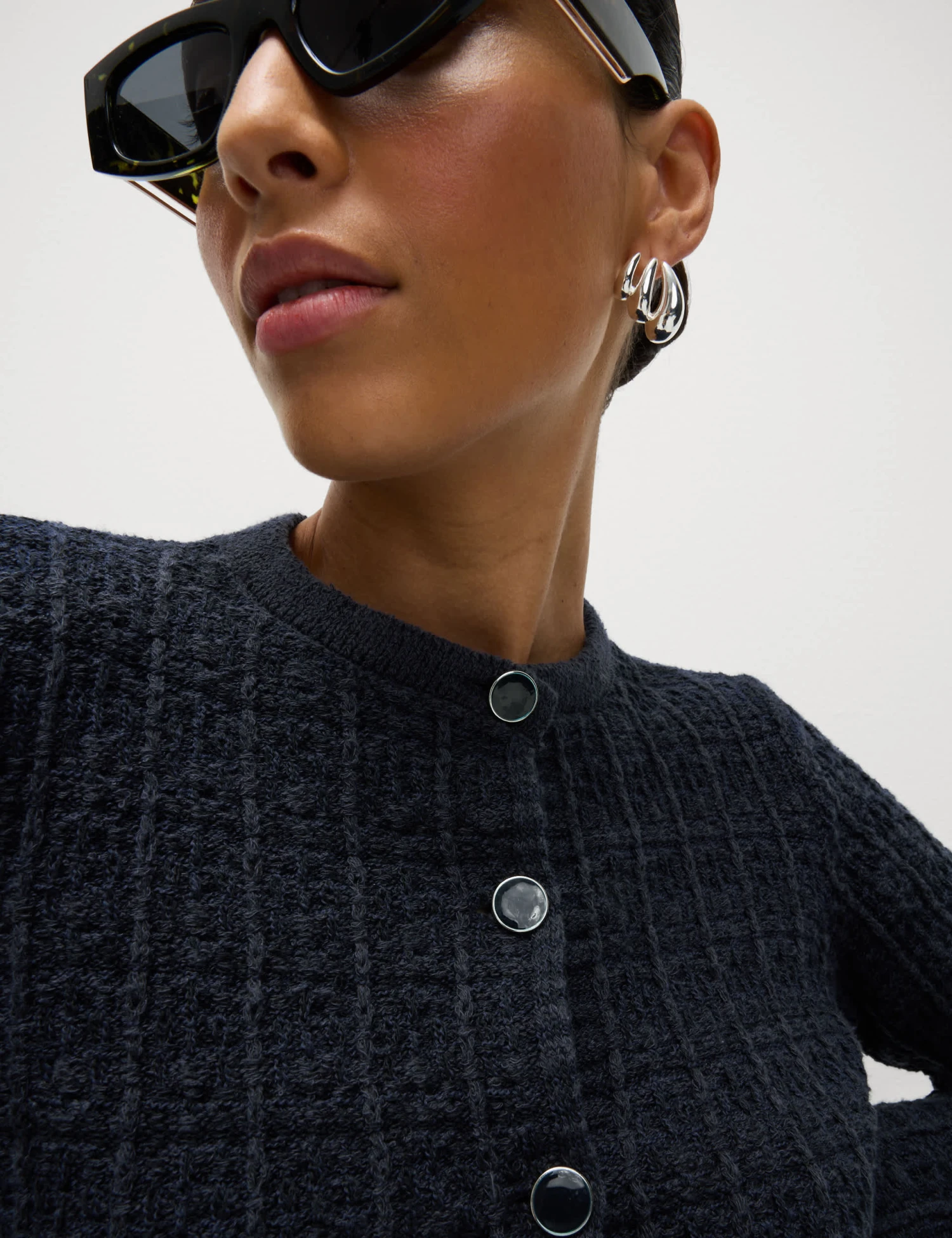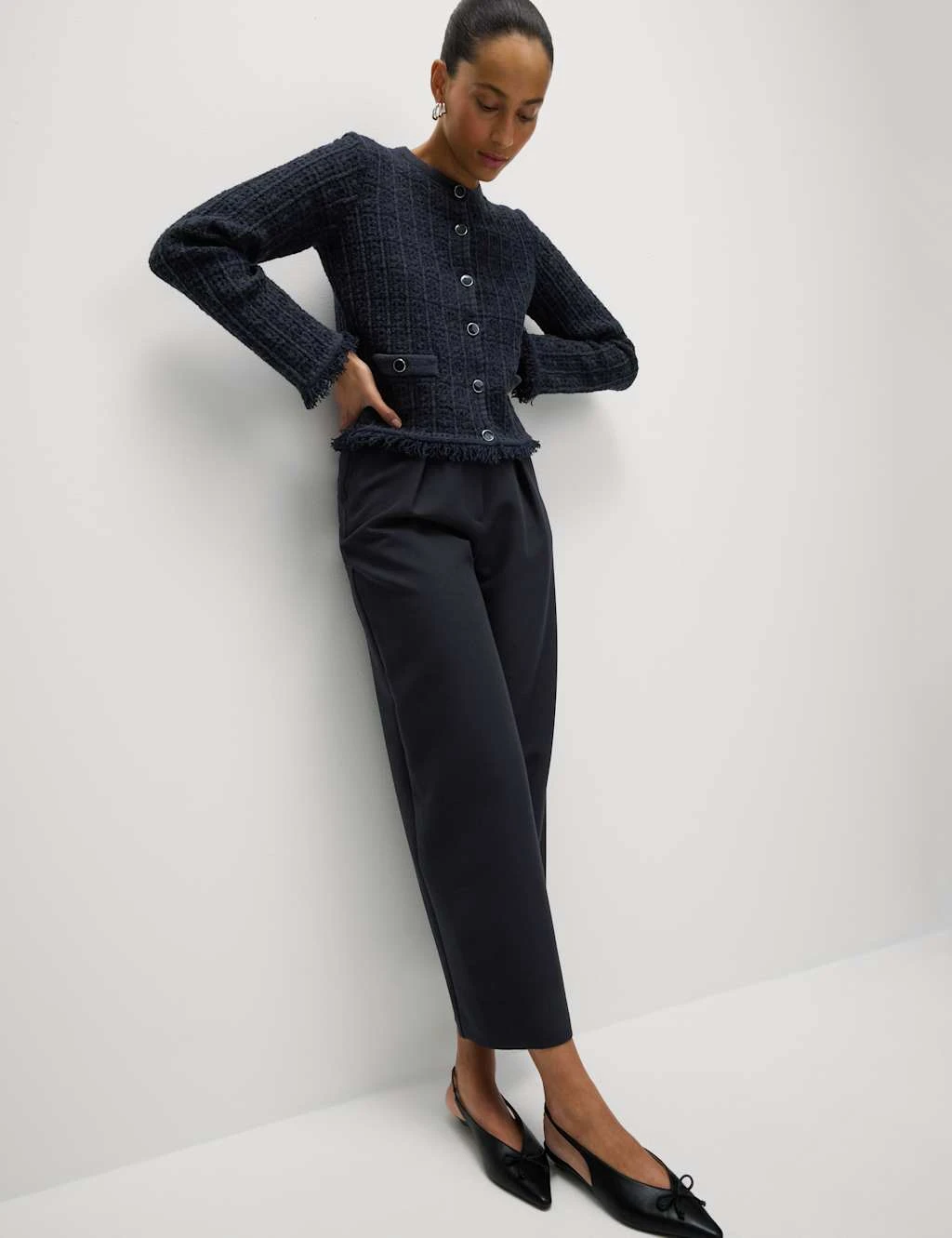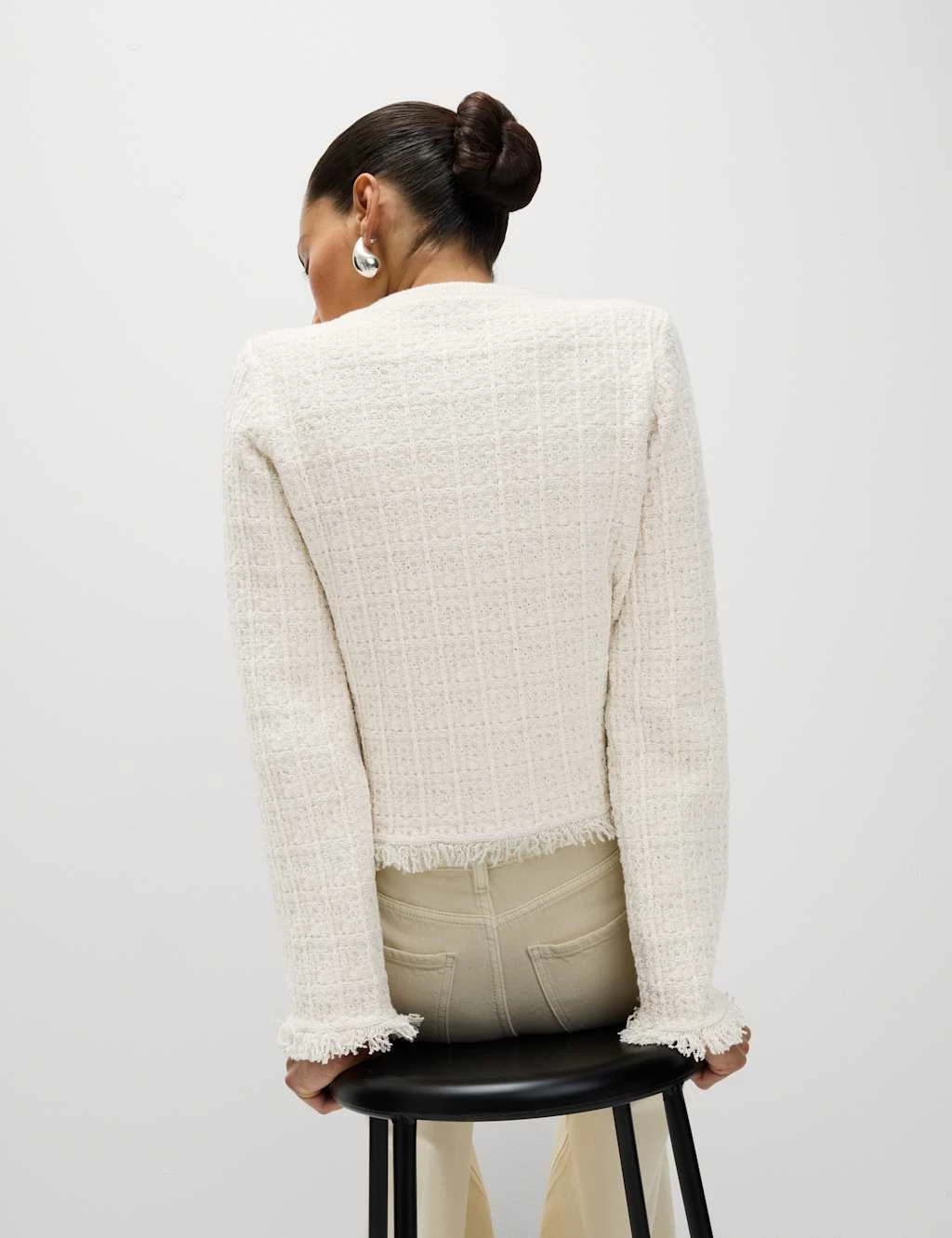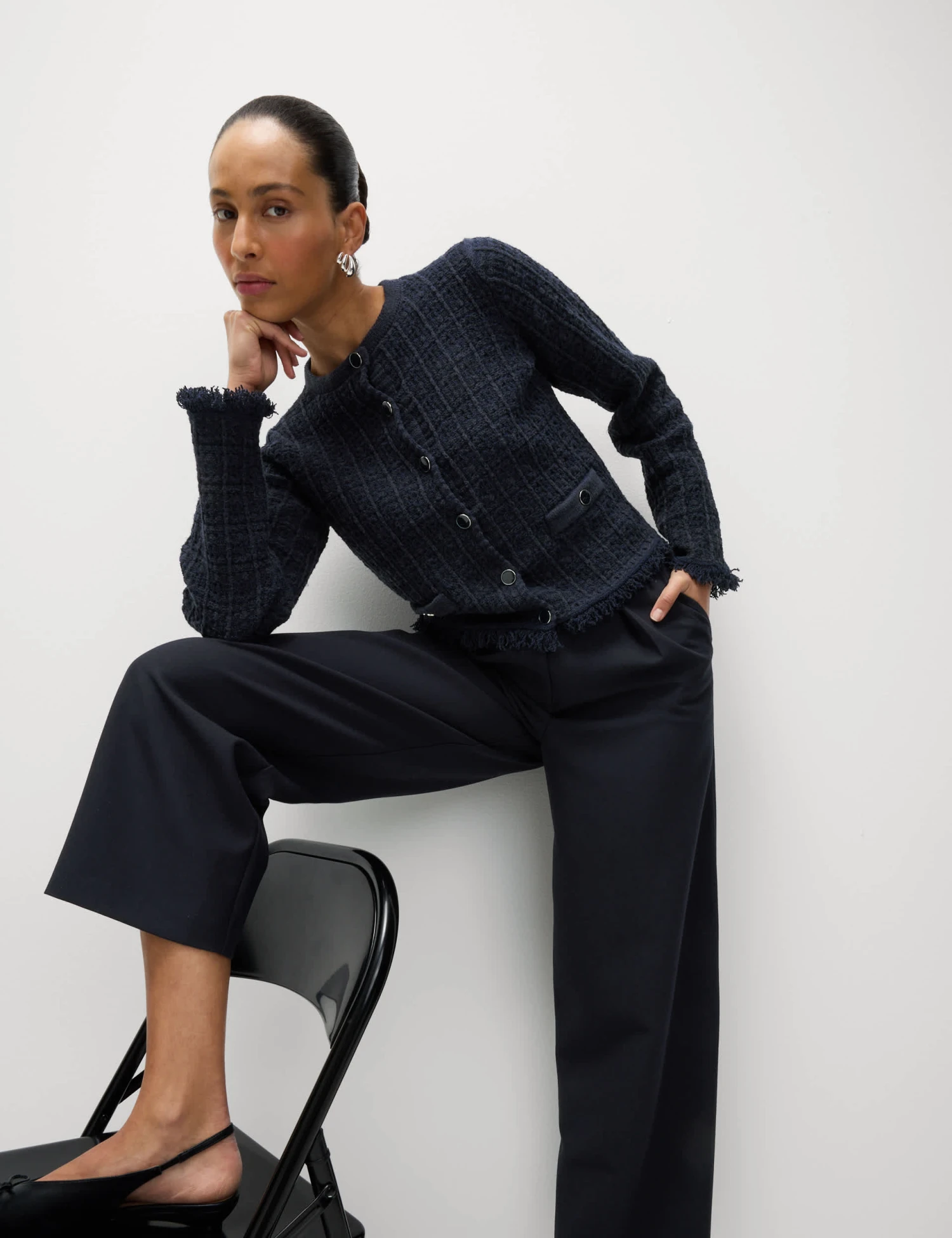 Add a touch of texture to your outfits with this cotton-rich knitted jacket. It’s designed in a regular fit, with a timeless crew neckline and secure button fastenings. The two mock pockets on the front offer a practical touch. Fringe detailing on the hem and cuffs completes the stylish look. M&S Collection: easy-to-wear wardrobe staples that combine classic and contemporary styles.