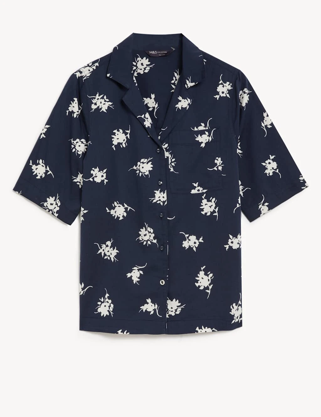 This printed resort-style shirt is crafted from cotton-rich fabric for a breezy feel. Designed in a regular fit, with a collared v-neck. Short sleeves for a laid-back look and button fastenings for easy wear. Featuring a single patch pocket on the chest.