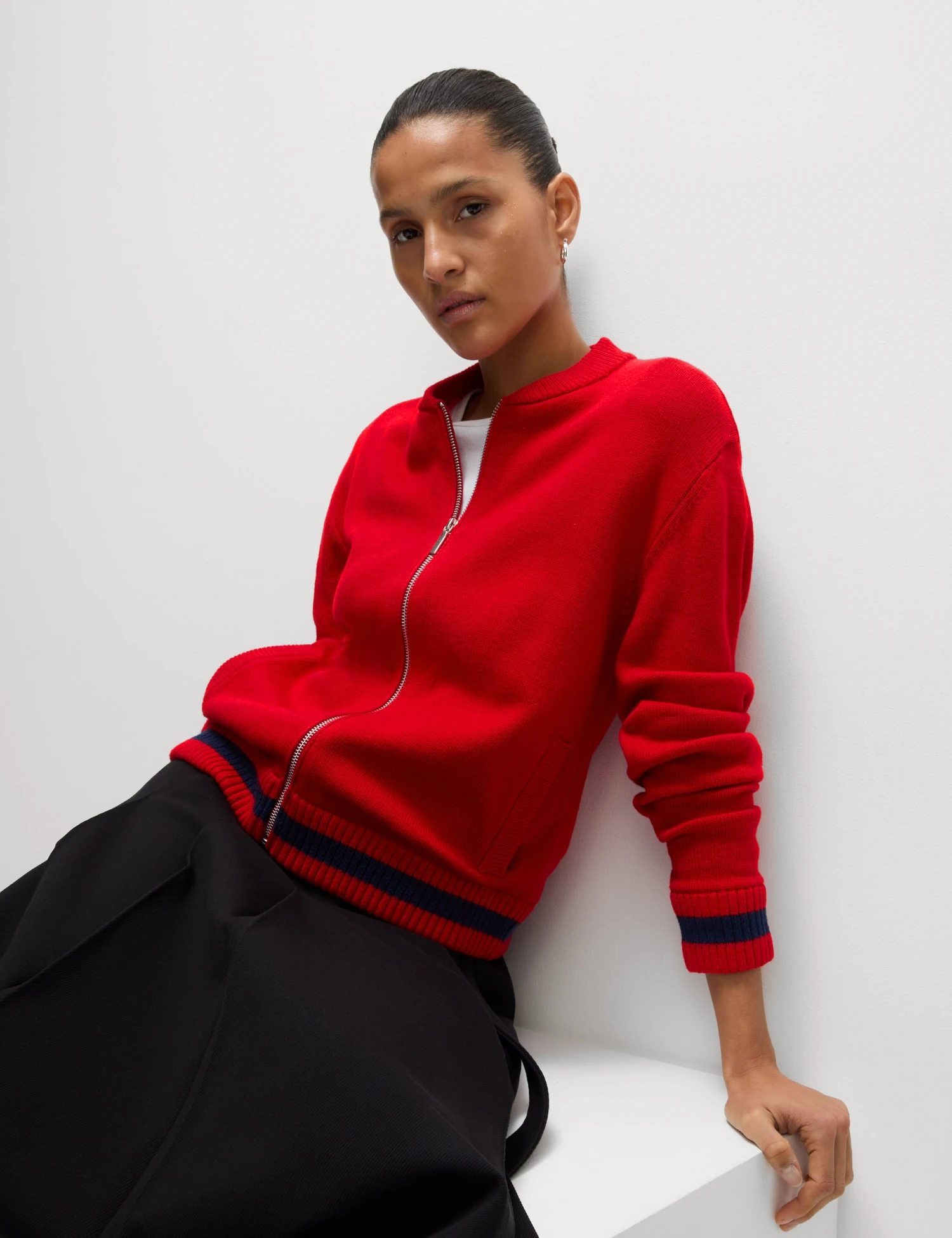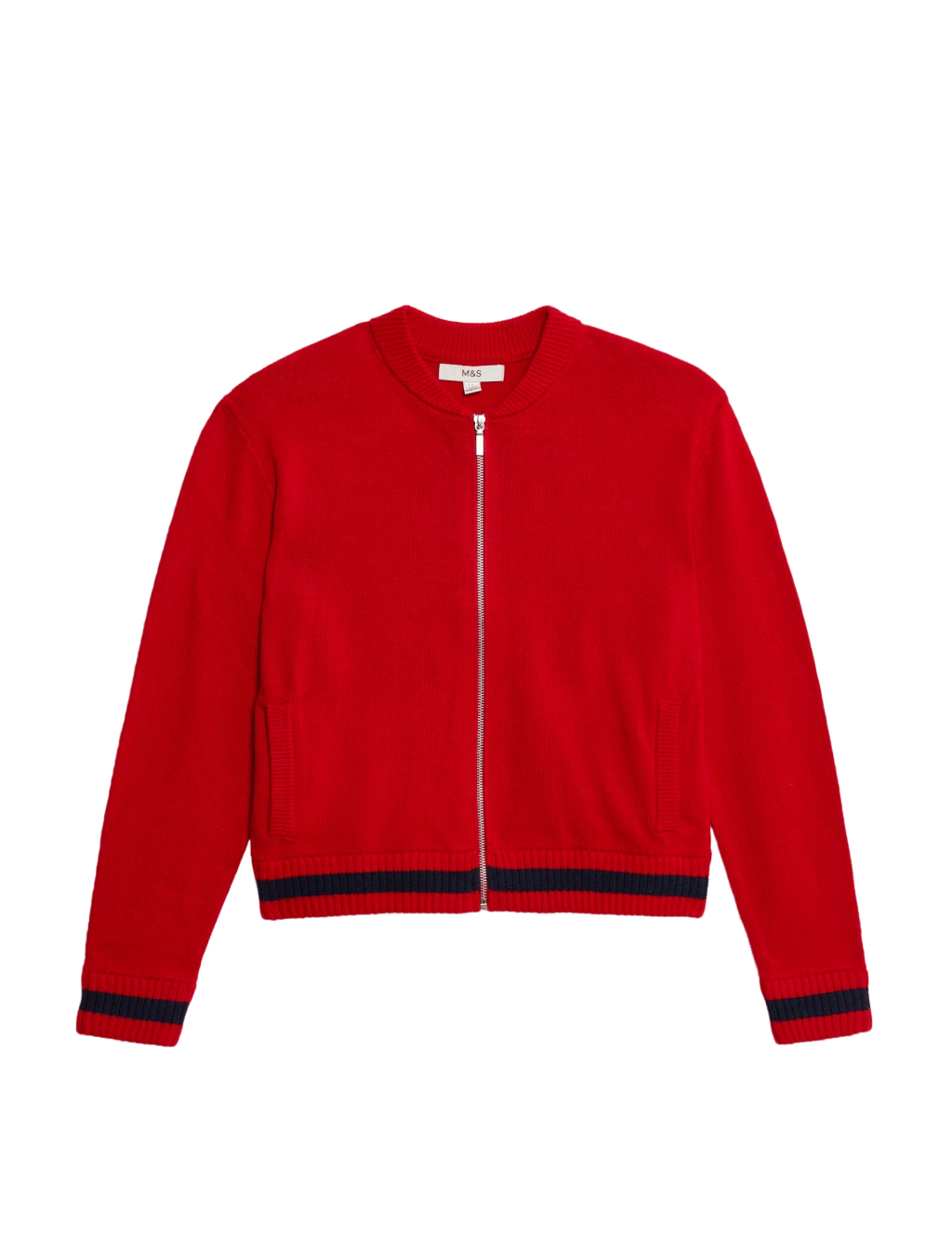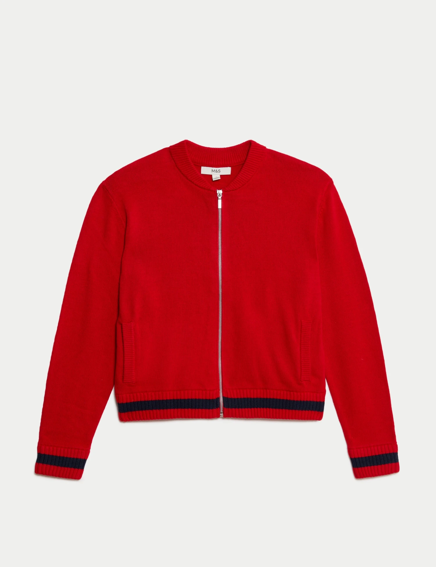 This cotton-rich cardigan is a stylish addition to your knitwear collection. Easy relaxed fit, with a zip-up front and a crew neckline for a bomber-inspired look. The textured knit and contrast tipping on the cuffs and hem add to the sporty feel. M&S Collection: easy-to-wear wardrobe staples that combine classic and contemporary styles.