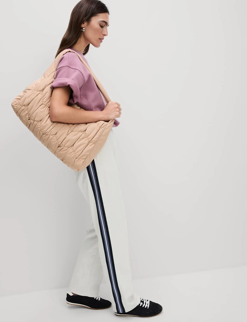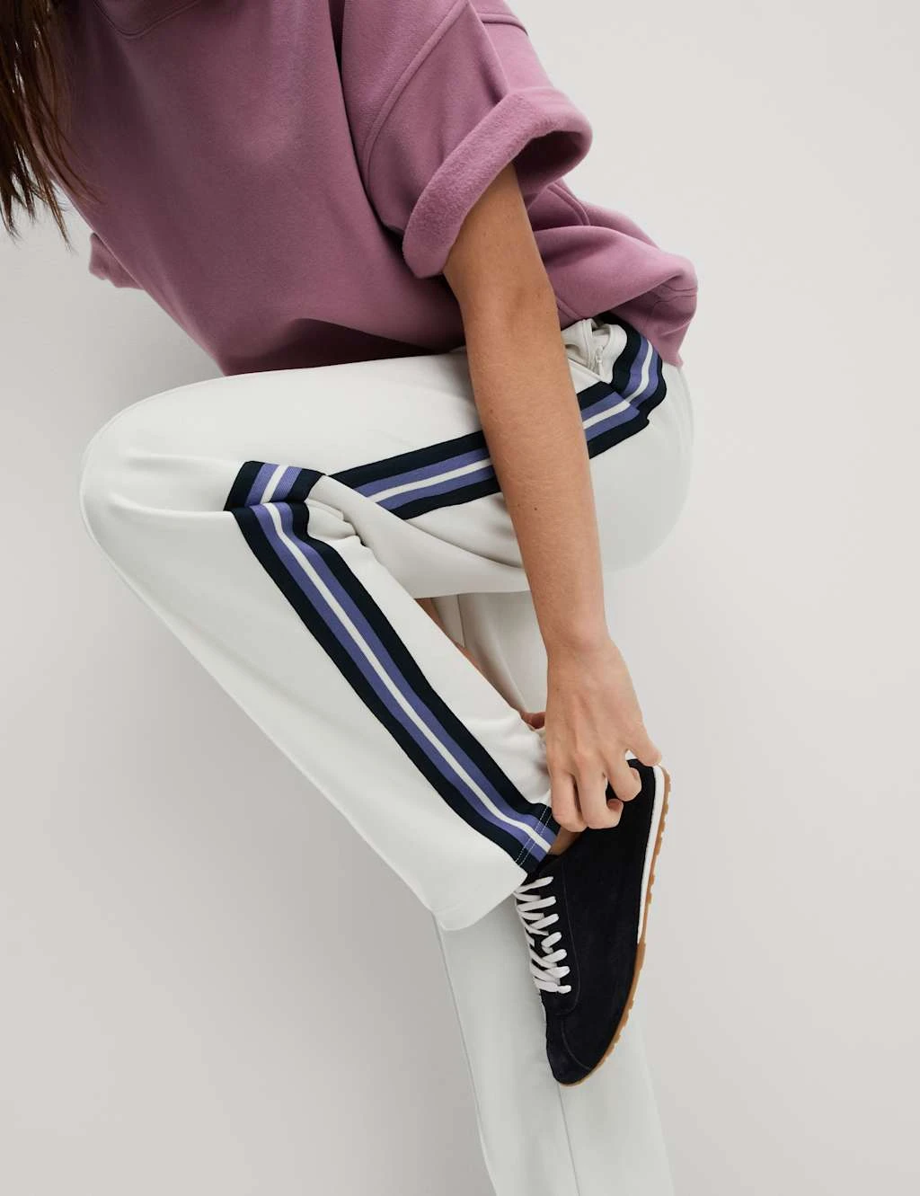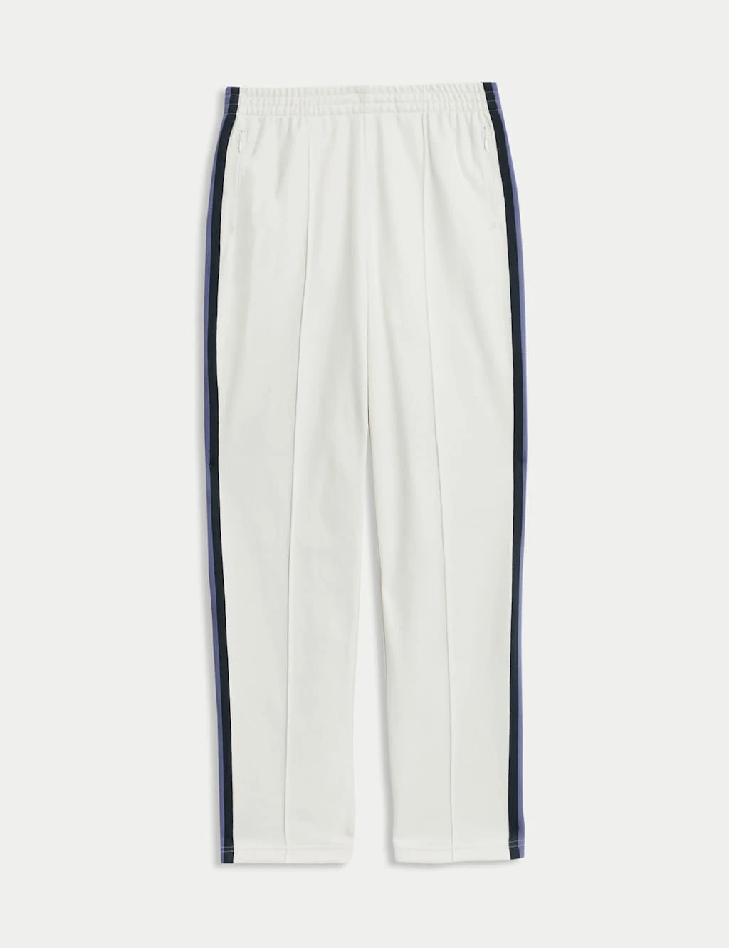 These cotton-rich joggers are a comfy choice for laid-back days. Timeless straight-leg design, featuring a high elasticated waist to provide easy movement. Contrasting side stripes on both sides add subtle retro styling. Finished with two zipped pockets for a secure touch. M&S Collection: easy-to-wear wardrobe staples that combine classic and contemporary styles.