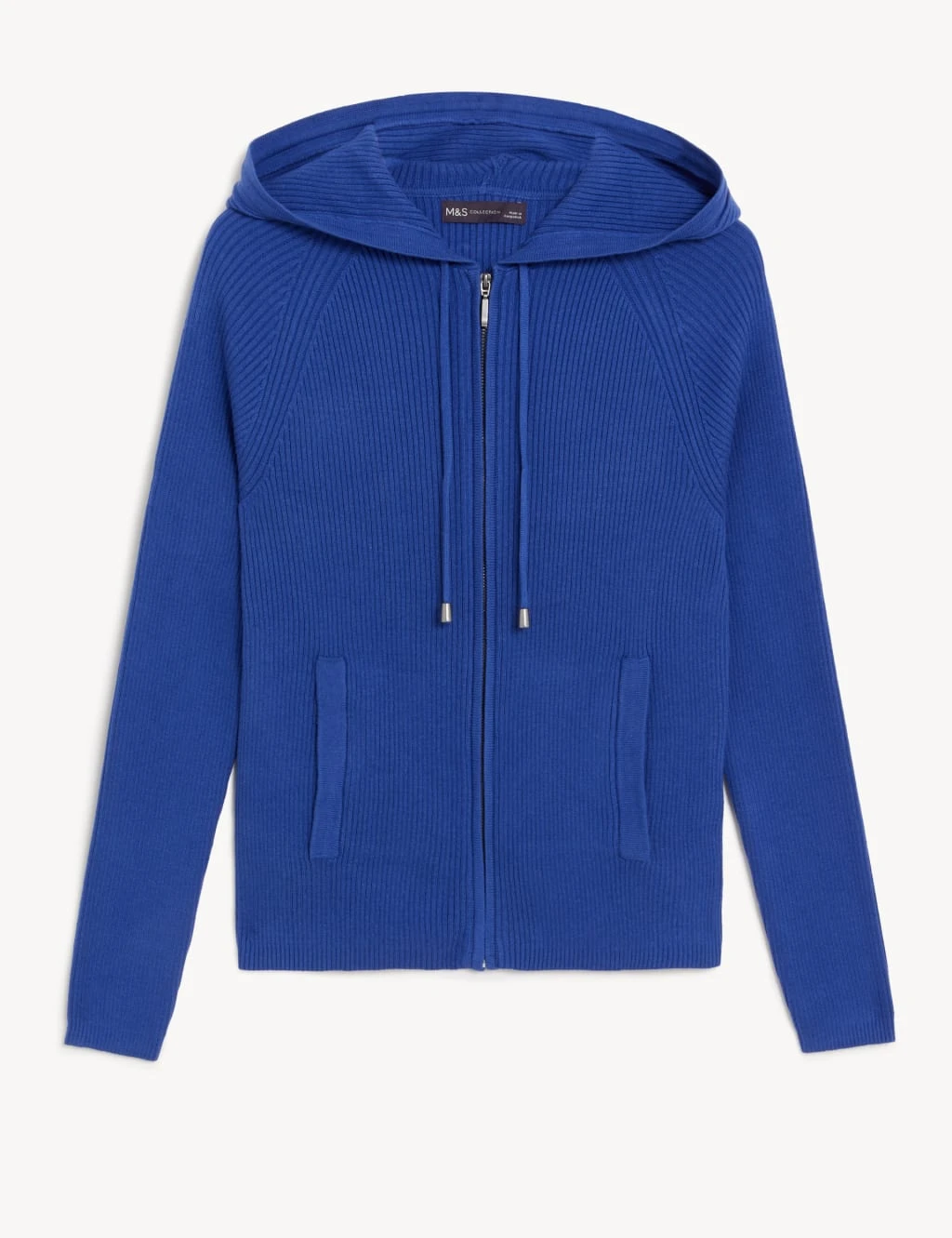 This ribbed cotton-rich hoodie is the perfect piece for your casual wardrobe. It’s designed in a comfy regular fit, with a zip-up front and raglan sleeves for easy movement. Two cosy front pockets and a drawcord fastening on the hood add a snug finish.