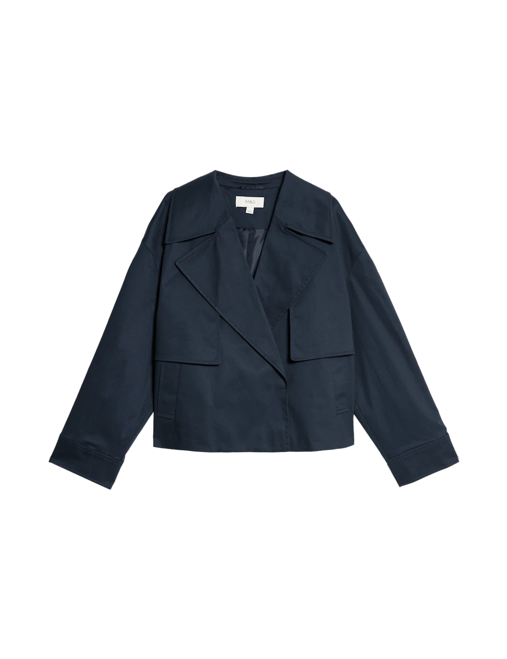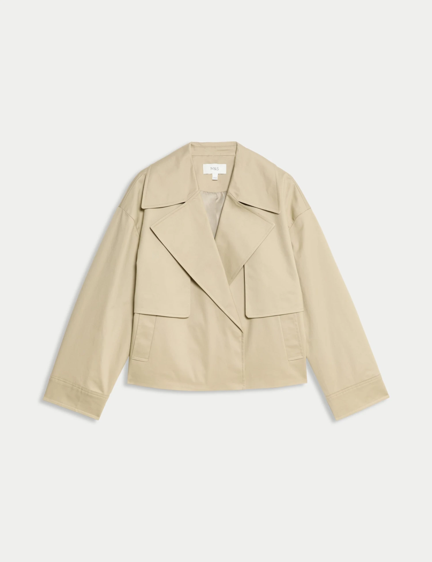 Step out in style, whatever the weather, with this chic cotton-rich trench coat. Its regular fit and cropped length create a modern silhouette that’s effortlessly wearable. Crafted from water-repellent Stormwear™ fabric with added stretch, it’s as practical as it is comfortable. Timeless touches like a storm flap bring classic trench coat charm. M&S Collection: easy-to-wear wardrobe staples that combine classic and contemporary styles.