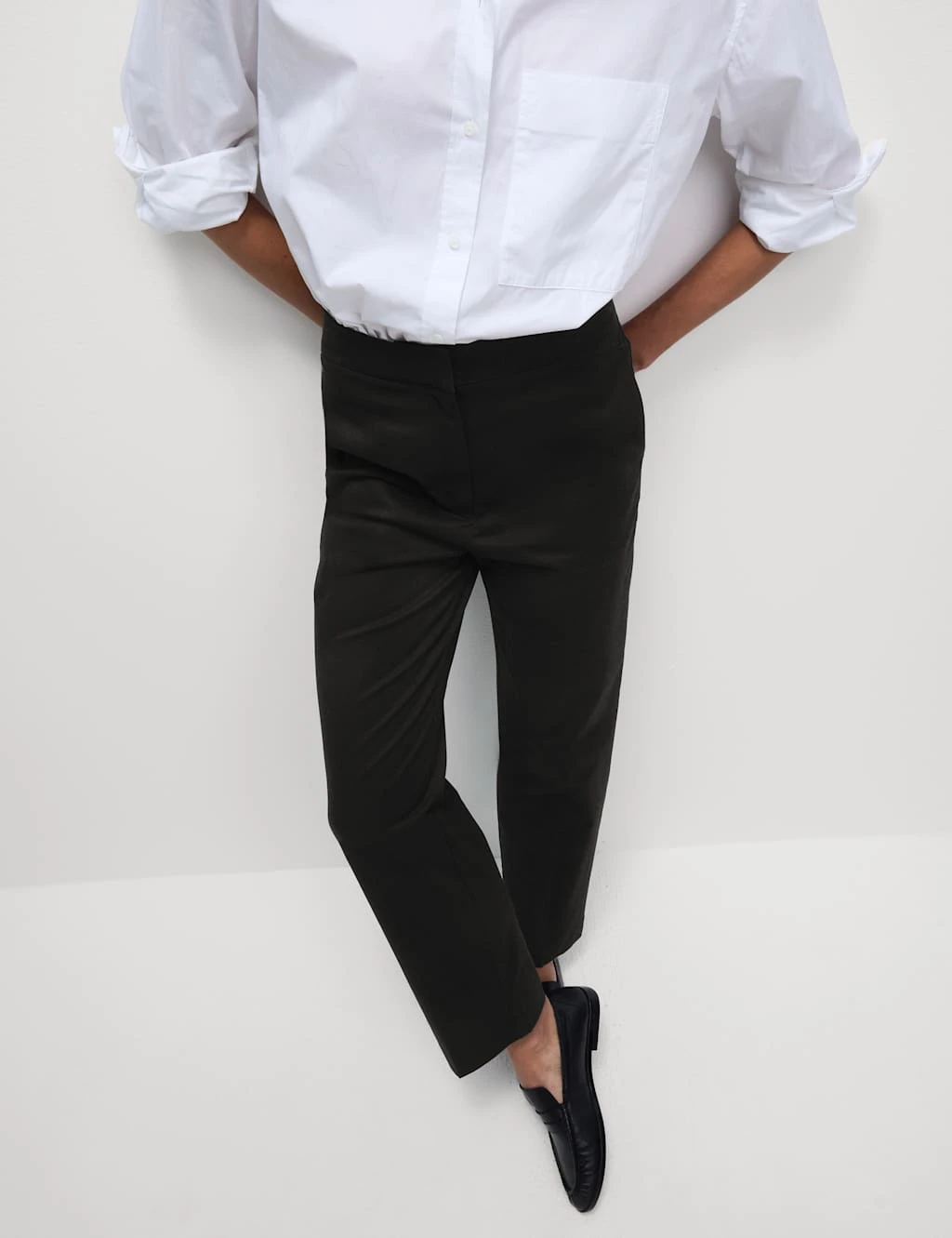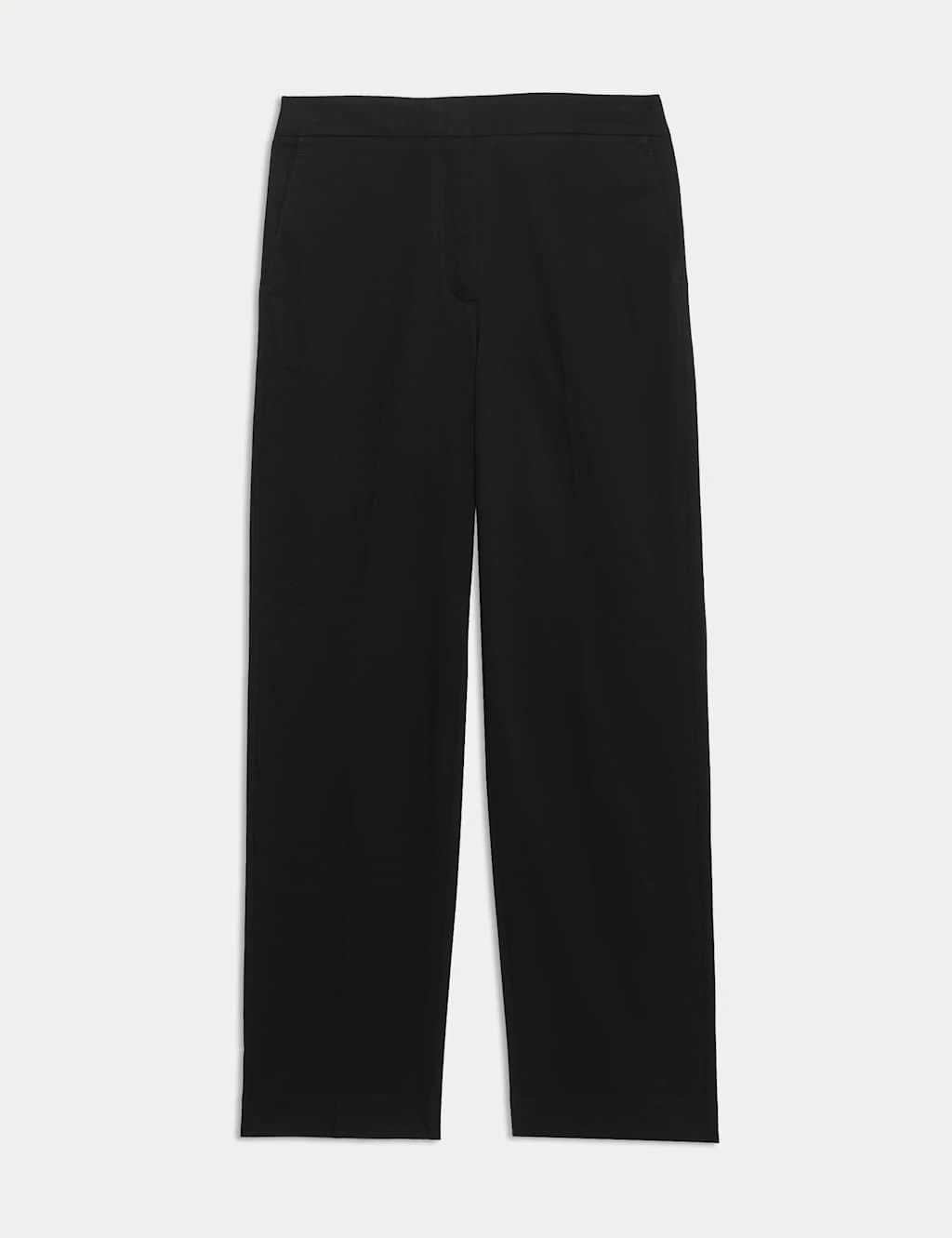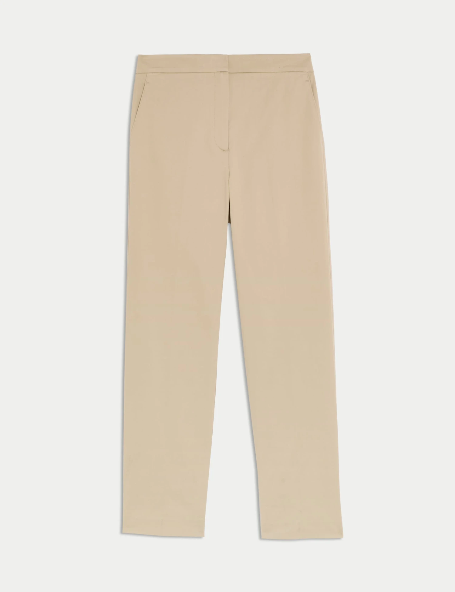 For a breathable addition to your work and weekend wardrobes, choose these cotton-rich trousers. Easy straight-leg design, with a comfortable high waist. Modern ankle-grazer length, featuring added stretch in the material. Two convenient side pockets and a neat zip fastening provide the finishing touch. M&S Collection: easy-to-wear wardrobe staples that combine classic and contemporary styles.