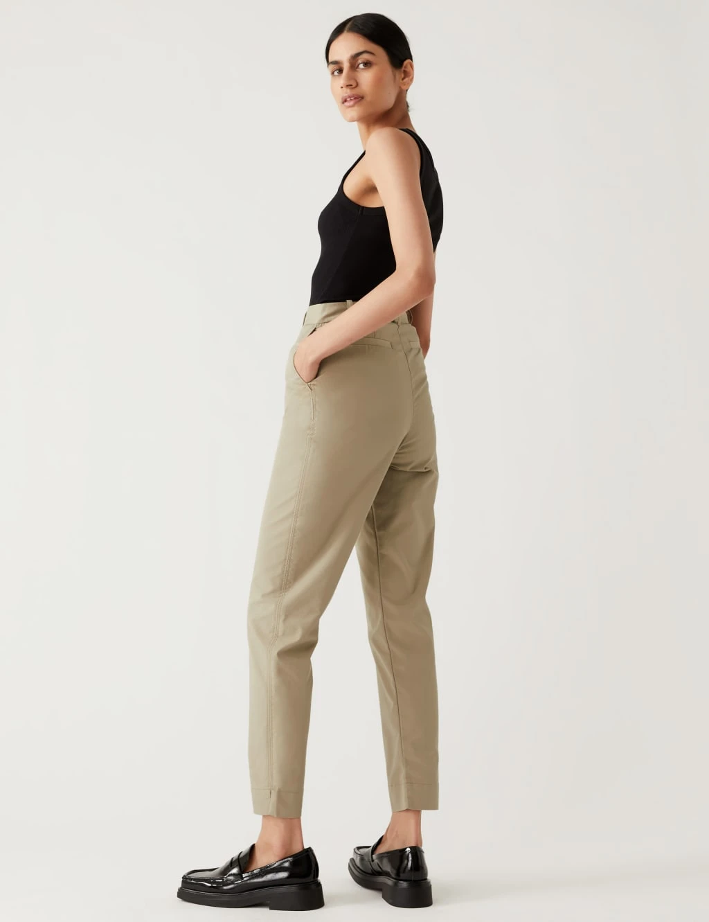 Pull on these smart cotton-rich chinos for a sophisticated everyday look. They’re designed with a flattering tapered leg and ankle-grazer length. Secure them with the hook and bar fastening for a neat finish. We only ever use responsibly sourced cotton for our clothes.