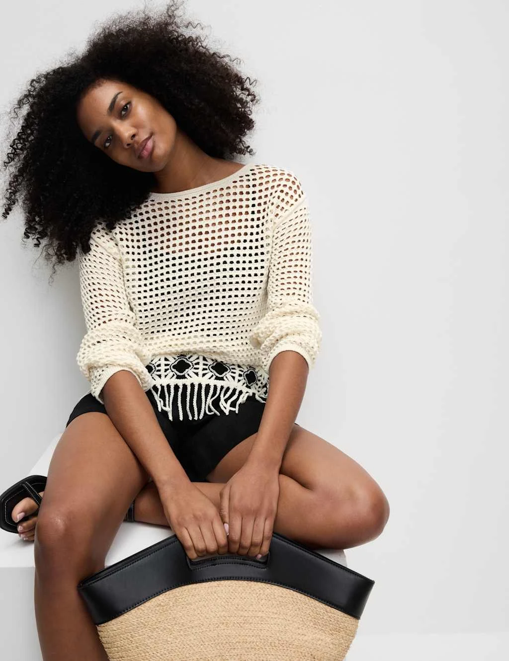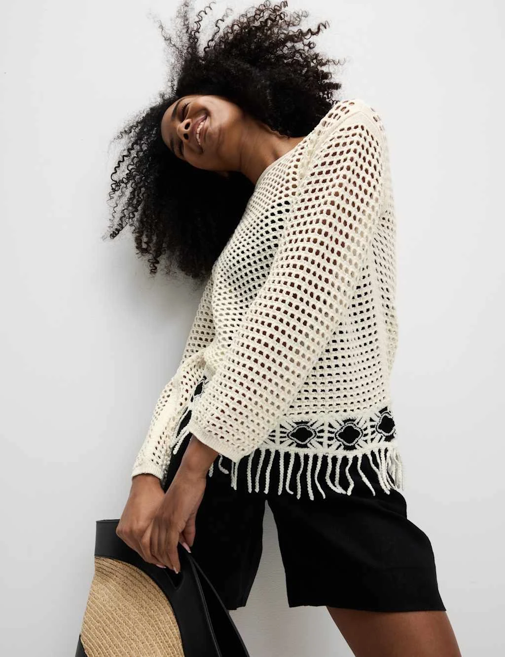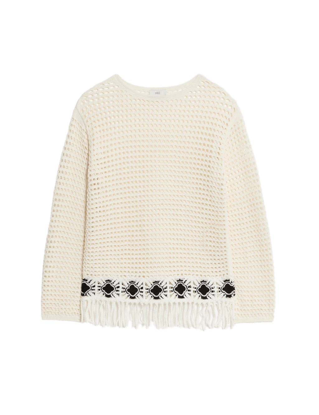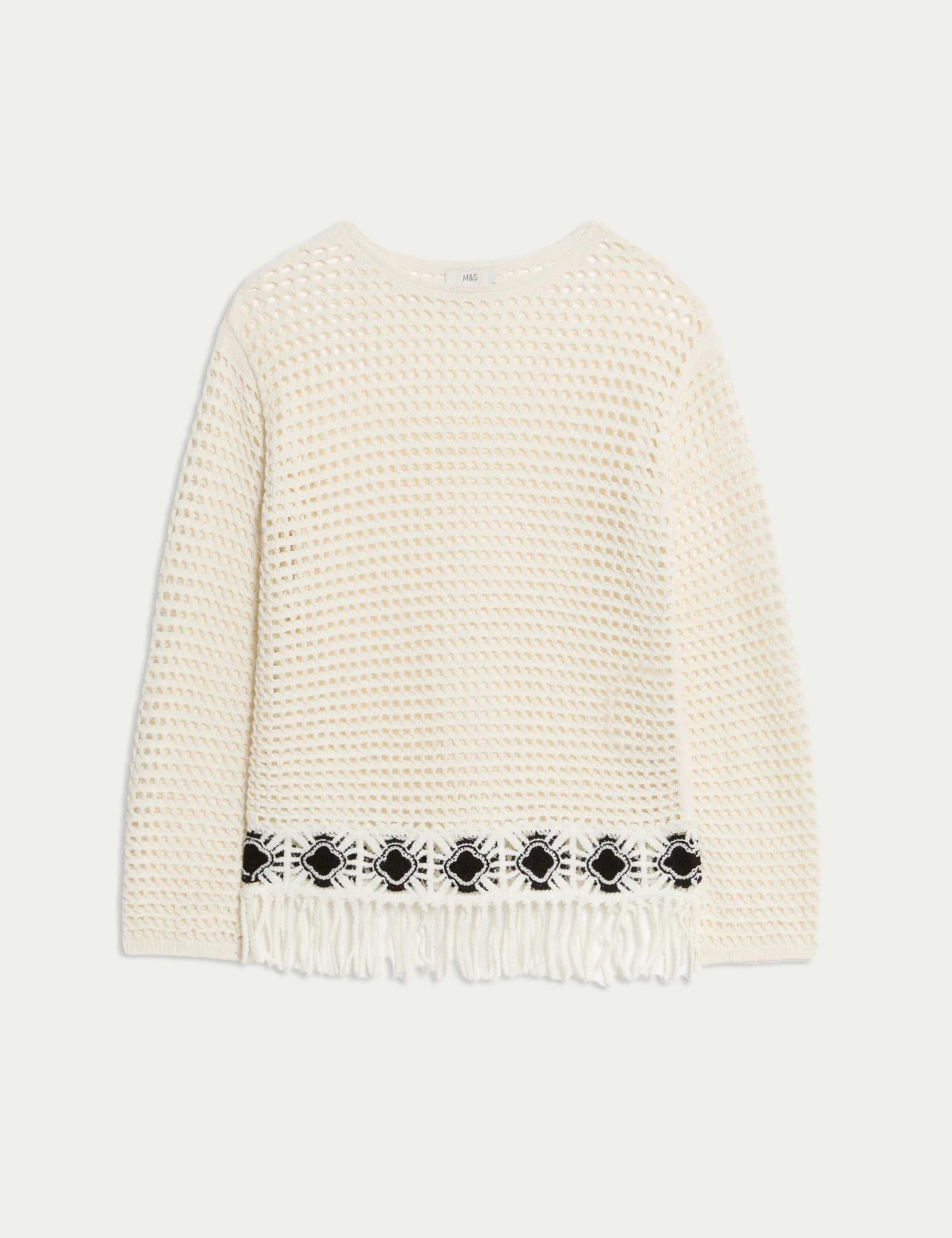 Add a bohemian-inspired touch to your look with this cotton-rich jumper. It’s knitted in a flattering slim fit, with a neat crew neckline and cosy long sleeves. The open-stitch design gives a light, airy feel, while the fringed hemline adds a fun finishing flourish. M&S Collection: easy-to-wear wardrobe staples that combine classic and contemporary styles.