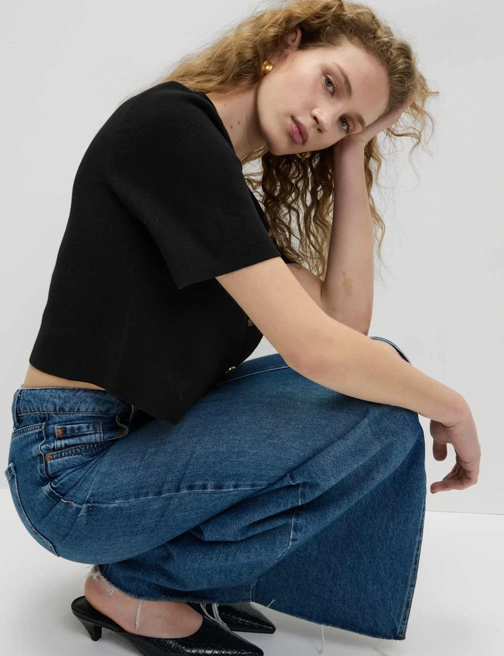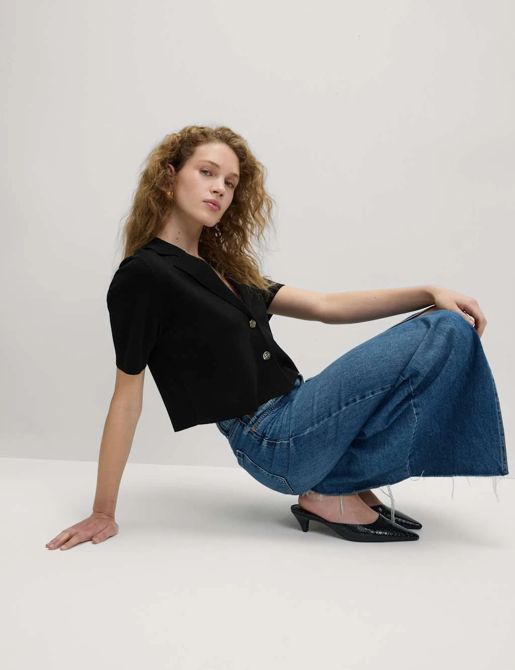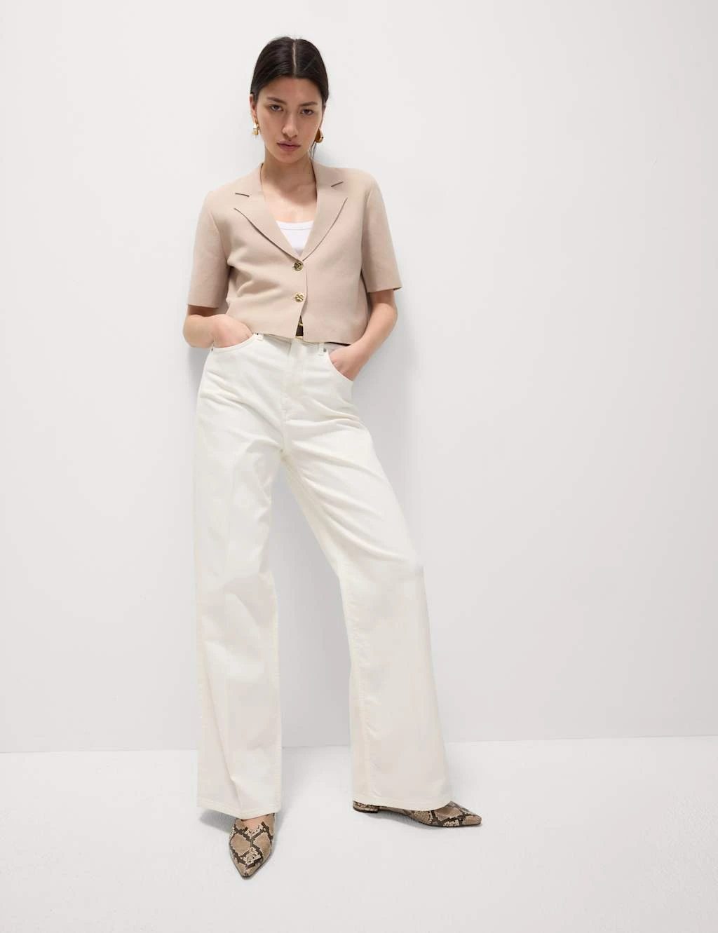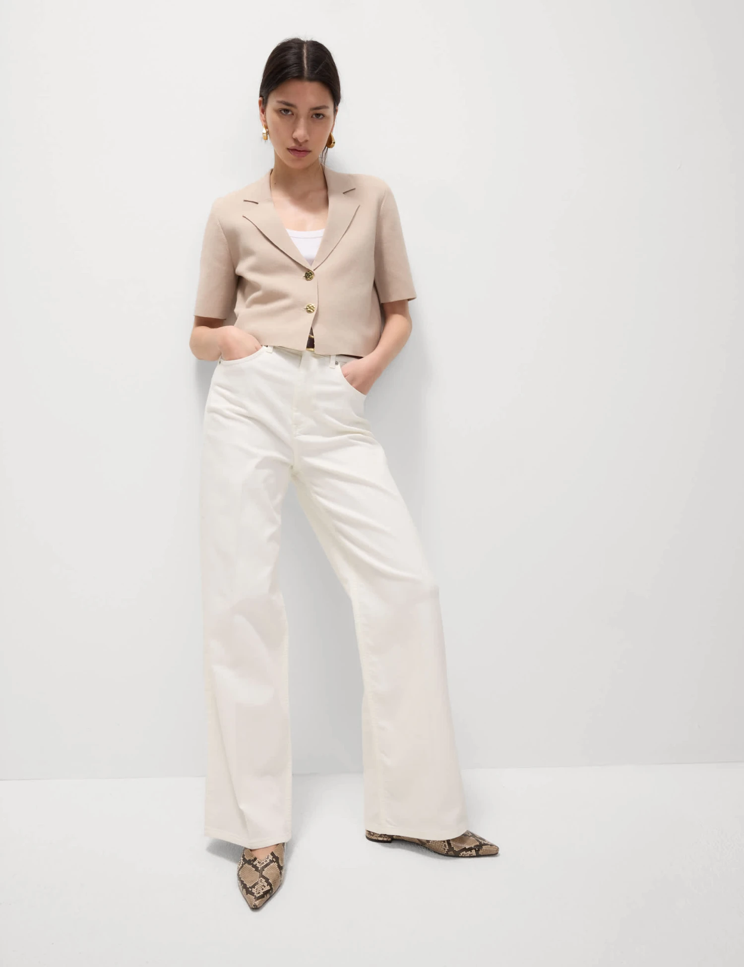 Elevate your smart-casual wardrobe with this effortlessly stylish cotton-rich knitted blazer. It’s designed in a comfortable regular fit with a cropped length, perfect for layering. A button-up front and two handy pockets add both polish and practicality, while the short sleeves and v-neckline create a sleek, modern silhouette. M&S Collection: easy-to-wear wardrobe staples that combine classic and contemporary styles.