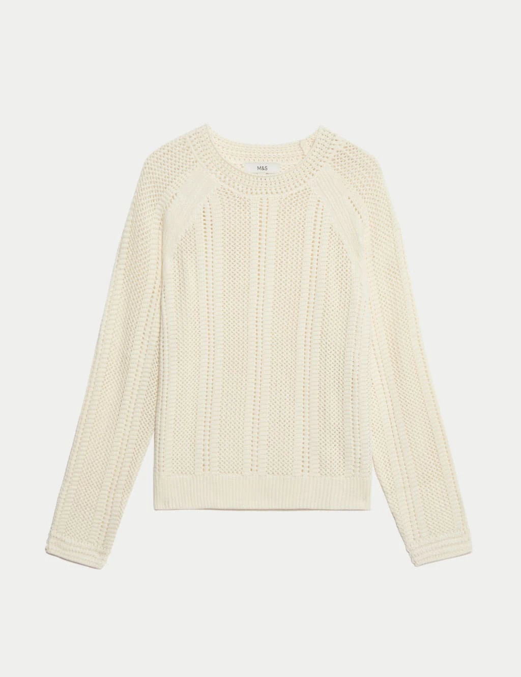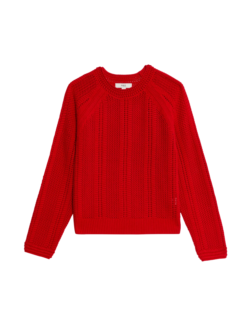 This cotton-rich textured jumper adds subtle dimension and interest to your look. It’s designed in a relaxed fit, with a classic crew neckline and ribbed trims. The open-stitch knit blend makes it perfect for layering as an essential everyday sweater.M&S Collection: easy-to-wear wardrobe staples that combine classic and contemporary styles.
