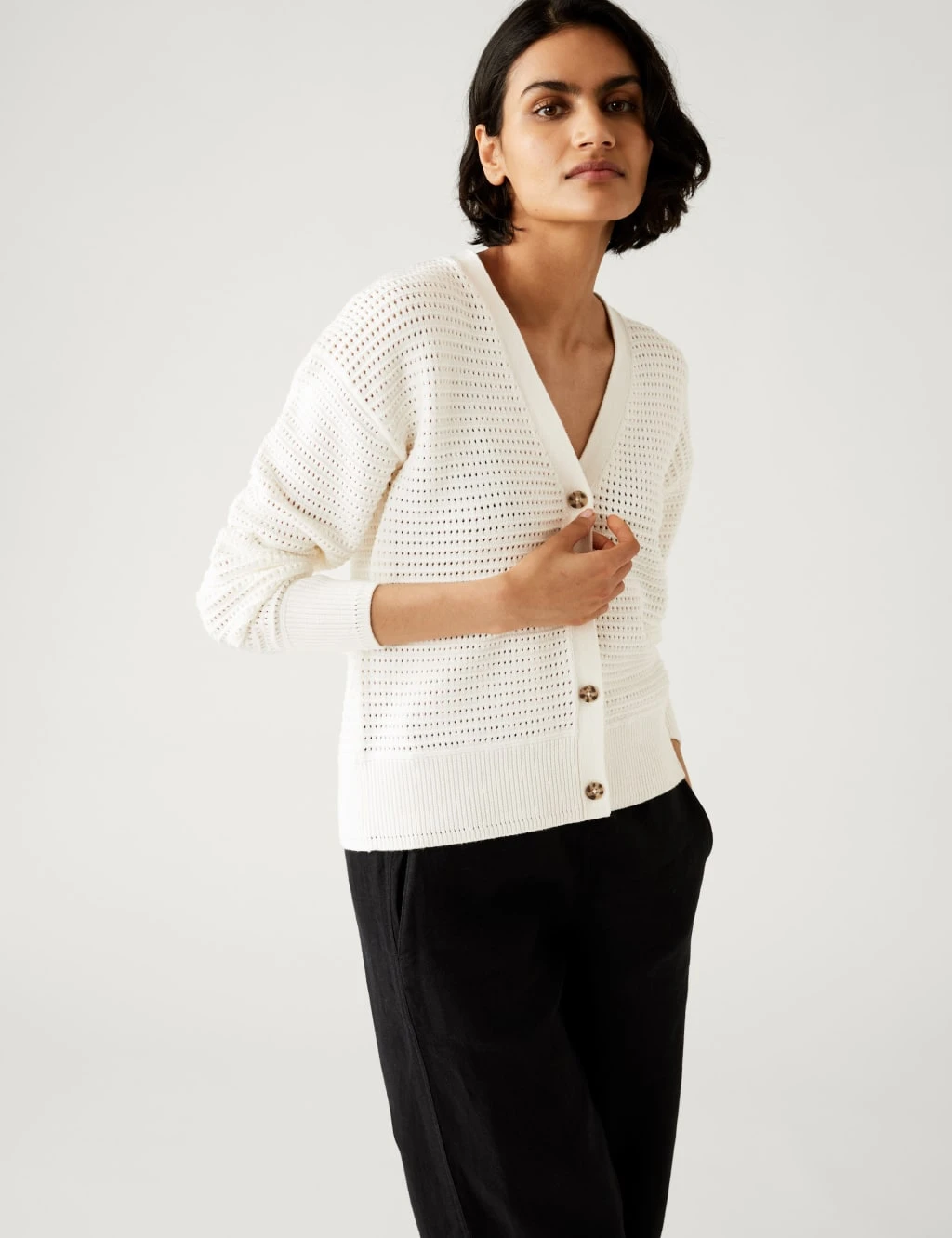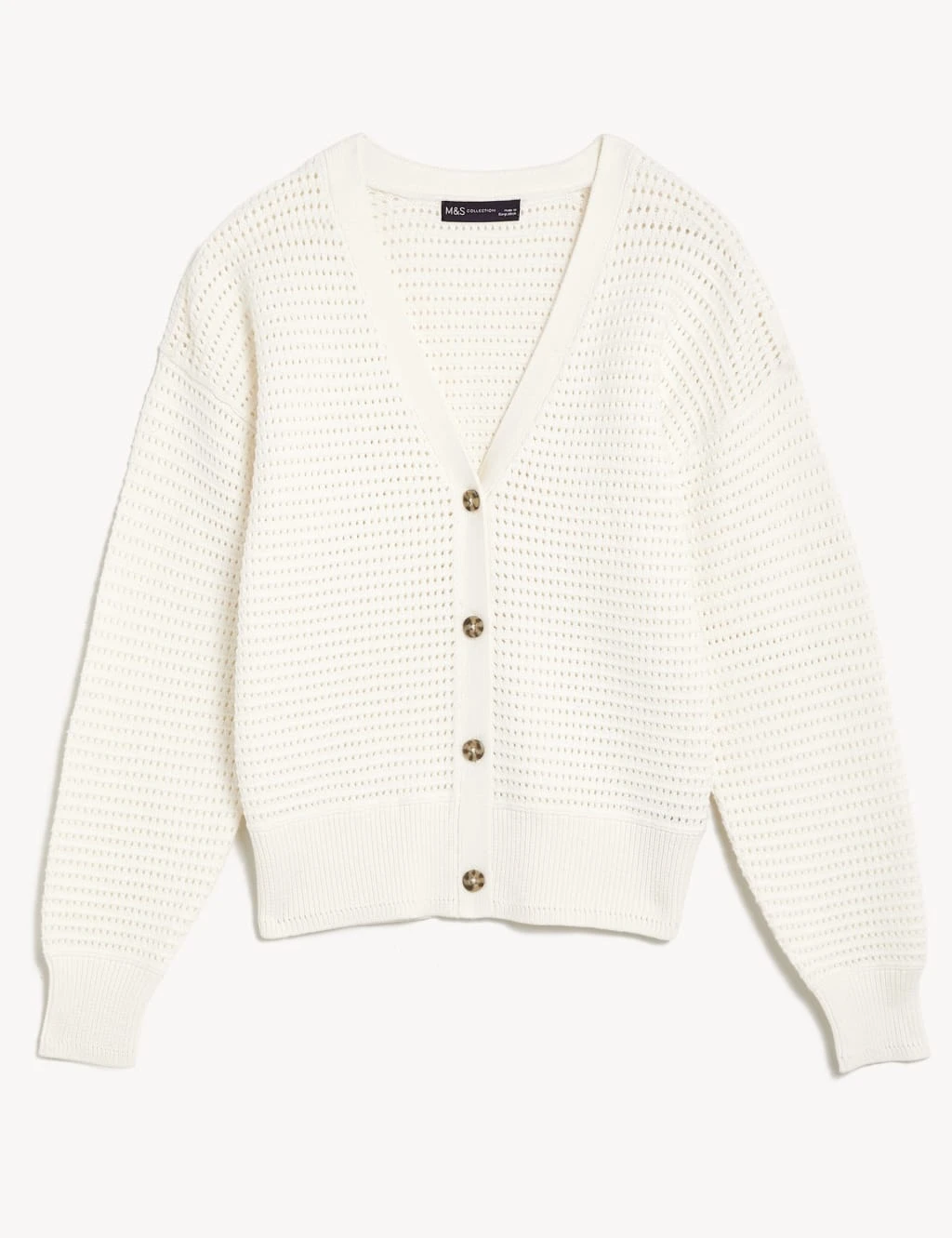 Reach for this cotton-rich cardigan to add a touch of texture to your ensemble. It’s knitted in a comfortable relaxed fit, with an elegant v-neckline and classic button fastening. M&S Collection: easy-to-wear wardrobe staples that combine classic and contemporary styles.