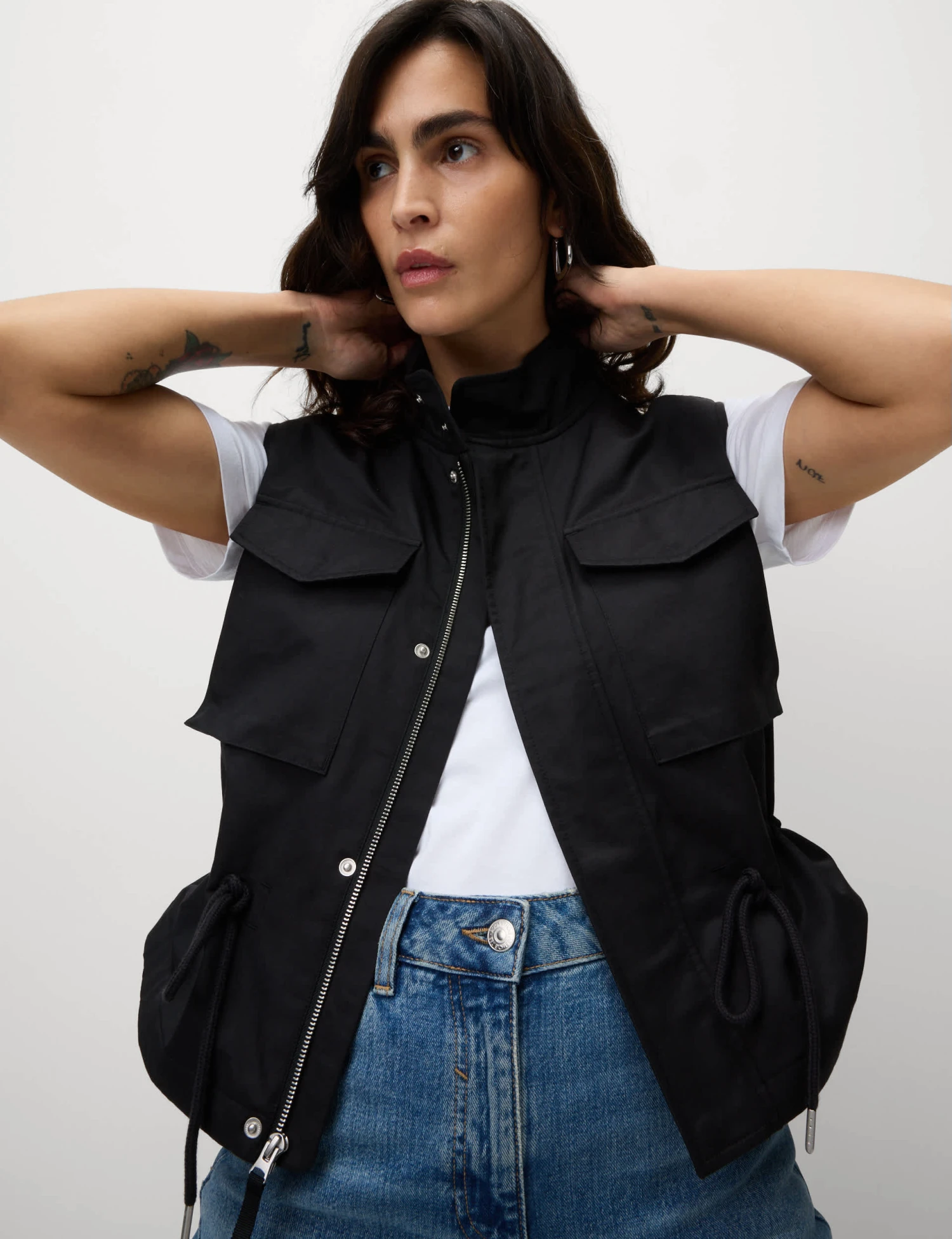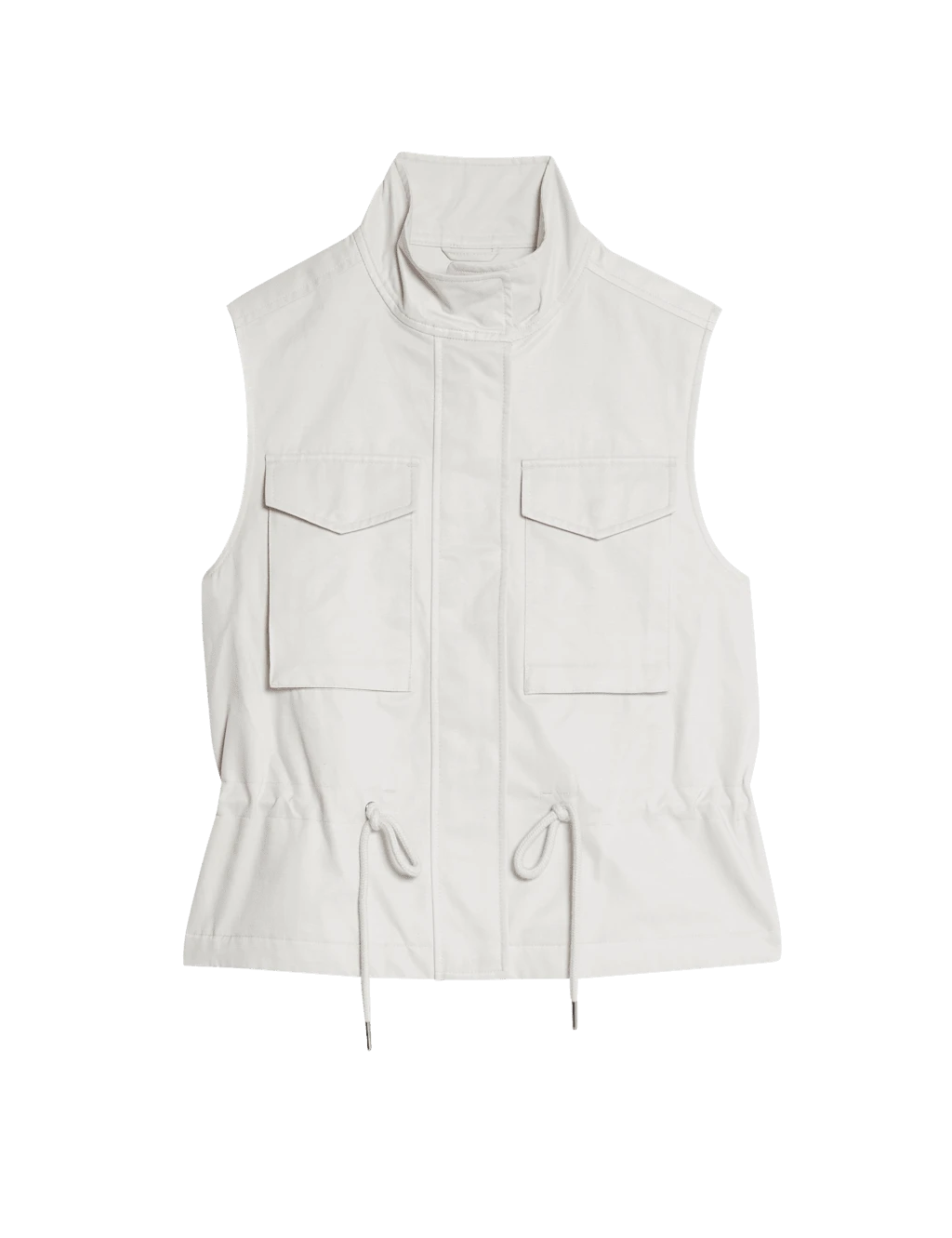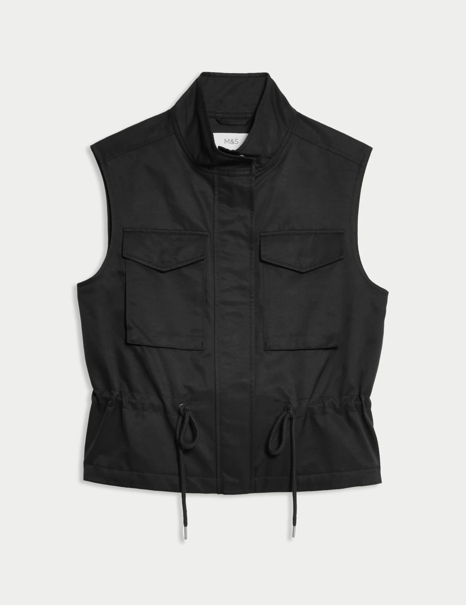This cotton-rich utility gilet is a versatile addition to your wardrobe. It’s cut in a regular fit, with a drawstring waist for a flattering shape. The zip-up design features a high neckline and is lined for comfort. Four pockets at the front add to its practical style. Our water-repellent Stormwear™ technology helps to protect you from light rain showers. M&S Collection: easy-to-wear wardrobe staples that combine classic and contemporary styles.