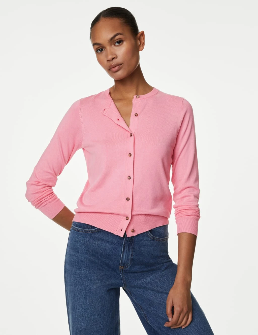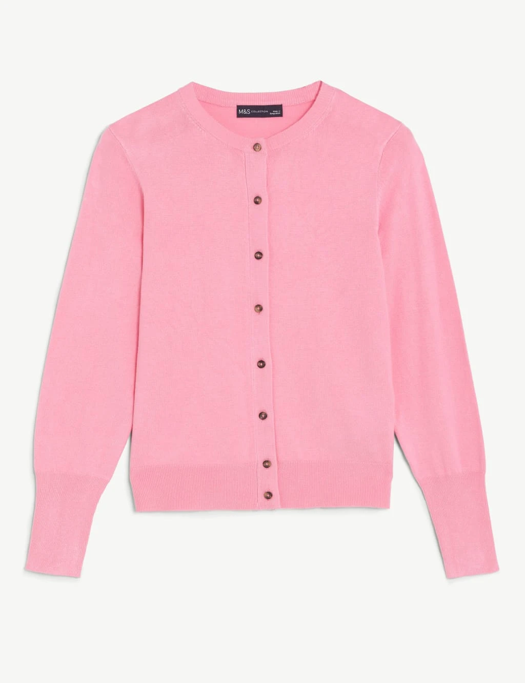 Put on this button-through cardigan for a touch of classic style. This comfortable design is knitted in a regular fit and features a timeless crew neck. Made with responsibly sourced viscose. M&S Collection: easy-to-wear wardrobe staples that combine classic and contemporary styles.