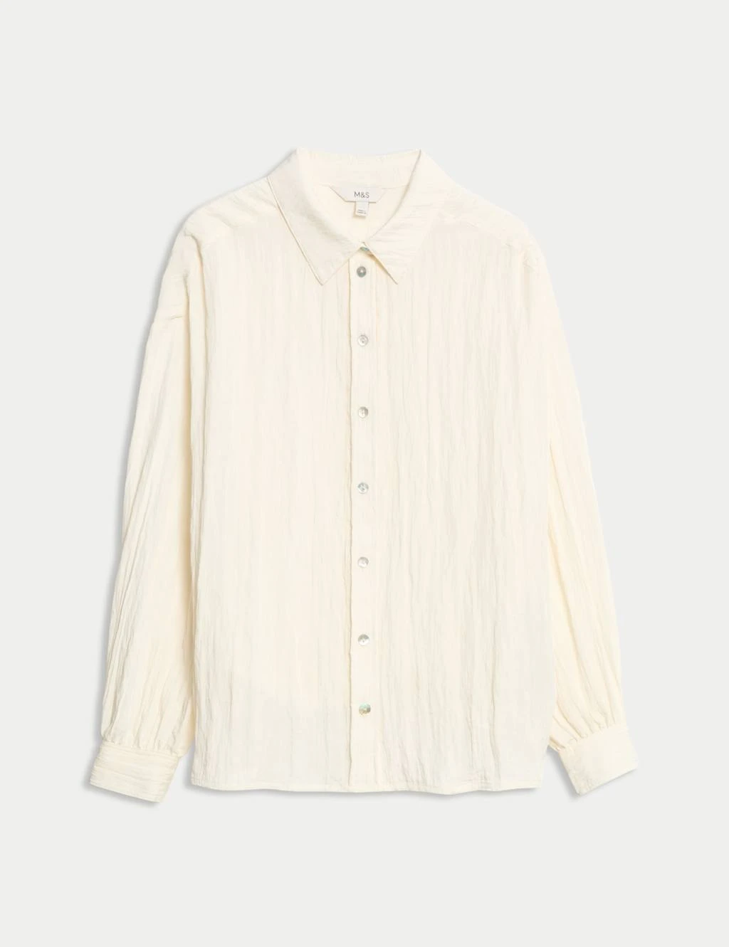 This eye-catching crinkle-textured shirt is an easy-to-wear piece for your smart-casual wardrobe. It’s cut to a comfy regular fit. Sharp collared neck and neat button-through fastening. Elegant curved hemline. M&S Collection: easy-to-wear wardrobe staples that combine classic and contemporary styles.