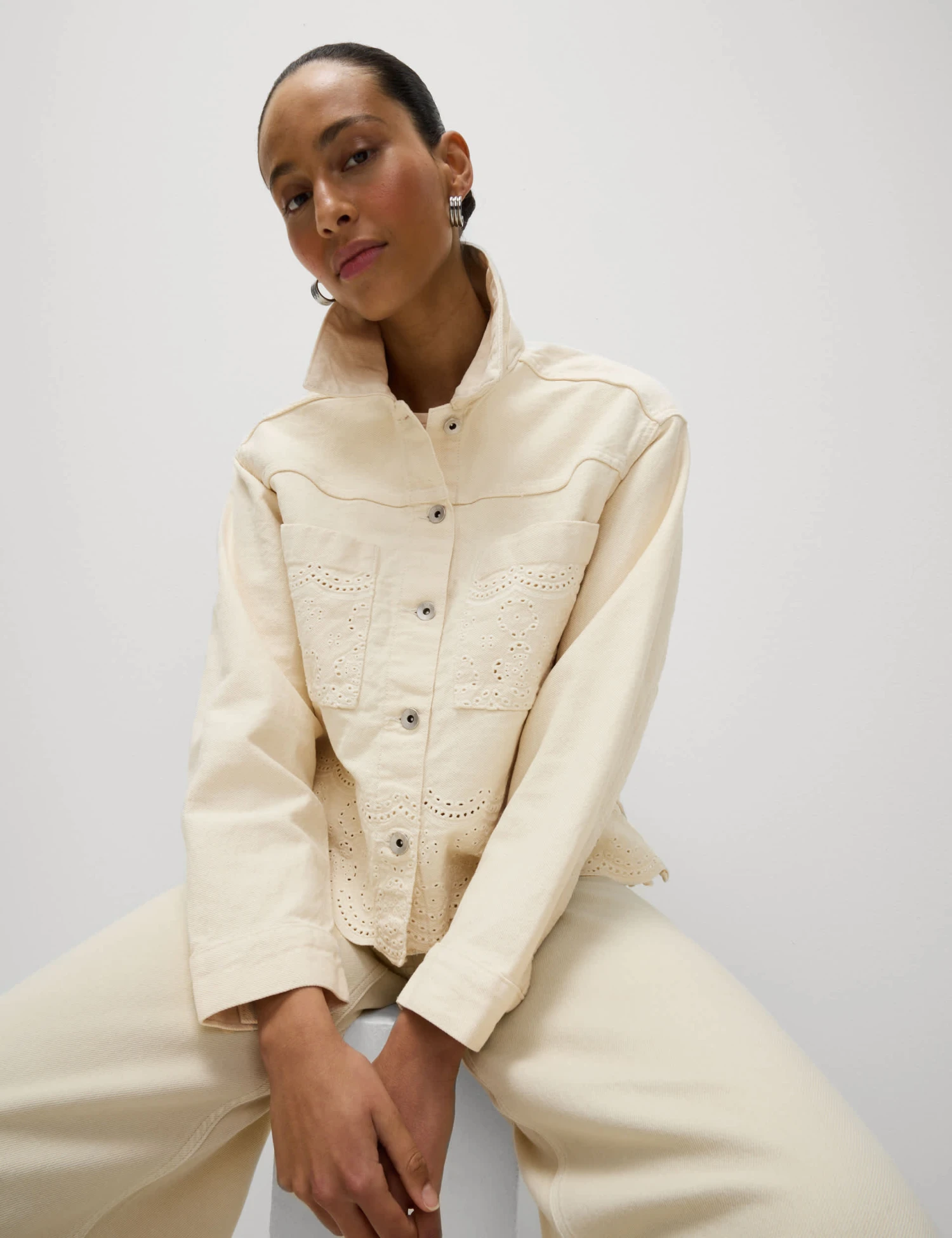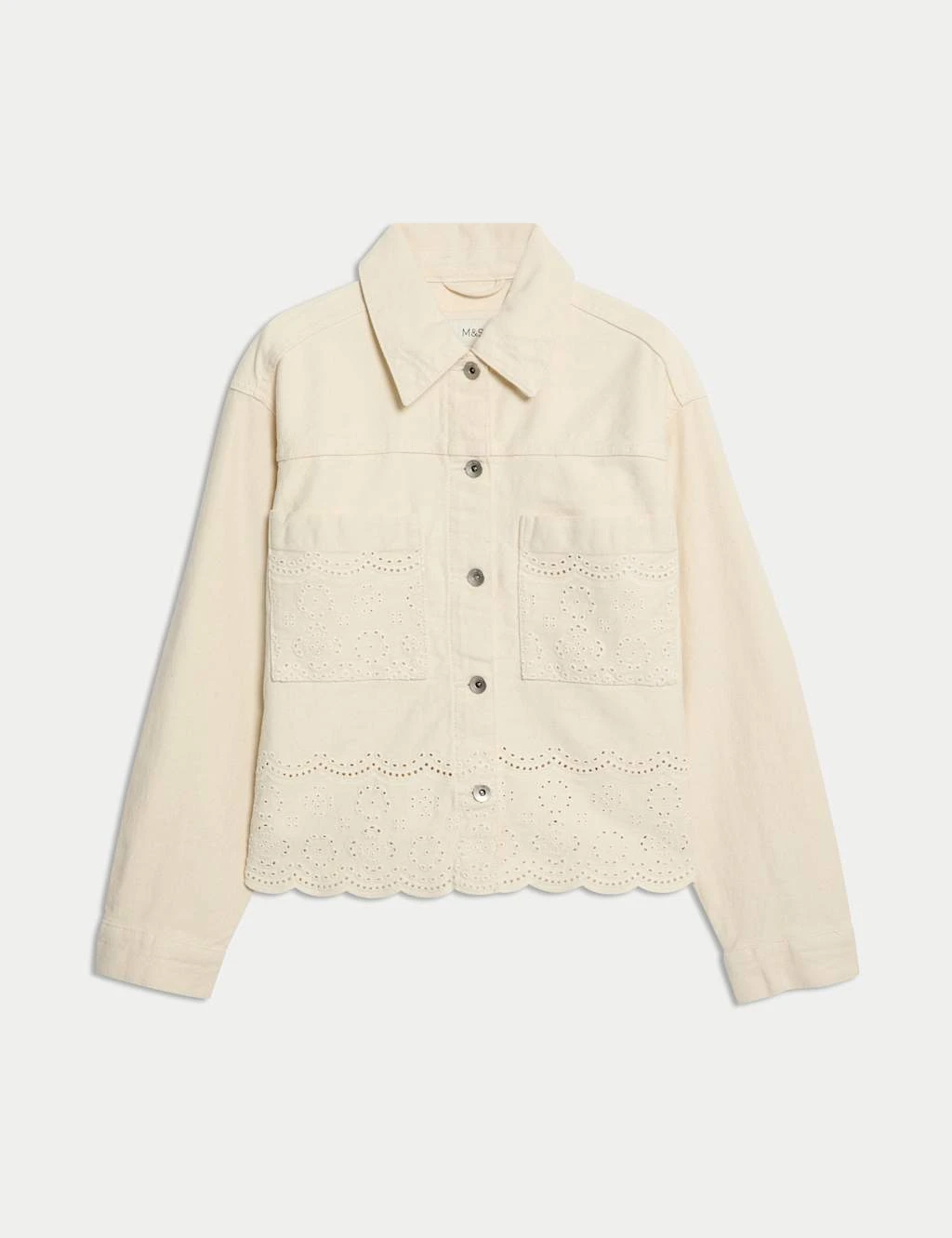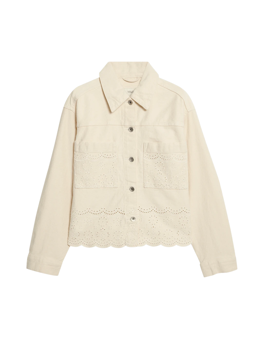 This cotton-rich denim shacket is an ideal lightweight layer for the warmer months. It’s cut in a relaxed fit for a casual look, with a button-through front and two chest pockets. Cutwork embroidery brings a pretty finish. M&S Collection: easy-to-wear wardrobe staples that combine classic and contemporary styles.