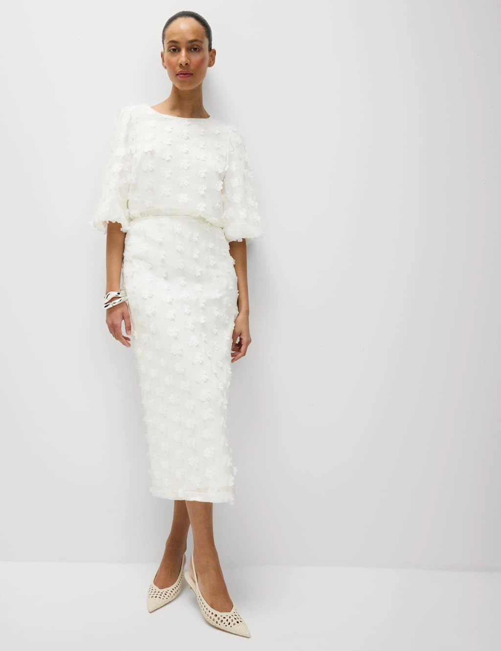 Elevate your evening look with this column skirt. It’s crafted with a sophisticated midaxi-length hem and all-over floral embellishments that bring a standout feel to the piece. A zip fastening neatly completes the design. M&S Collection: easy-to-wear wardrobe staples that combine classic and contemporary styles.