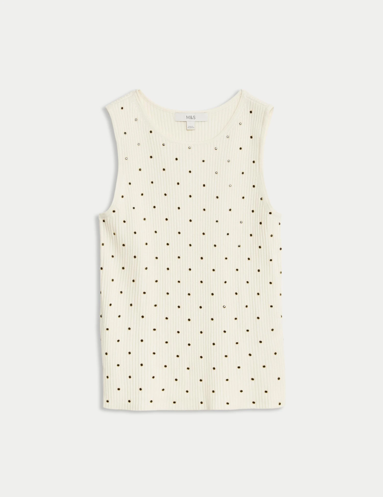 This knitted vest is a comfy addition to your smart-casual wardrobe. The flattering slim-fit design features all-over ribbing to give a neat look and embellished details for a touch of sparkle. It’s complete with easy crew neckline. M&S Collection: easy-to-wear wardrobe staples that combine classic and contemporary styles.