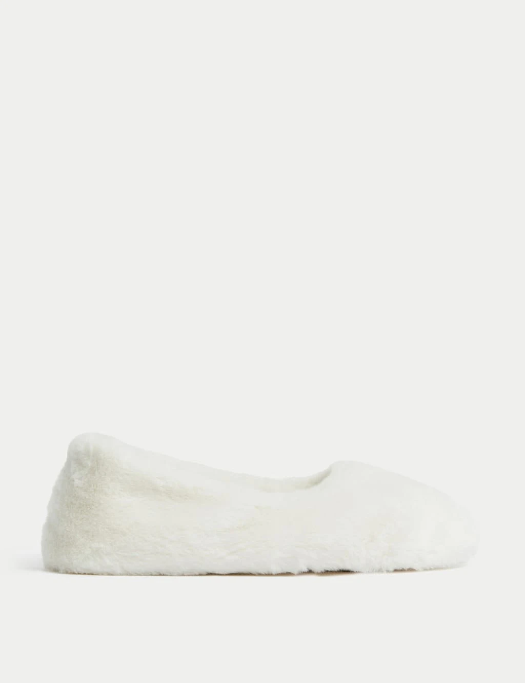 Treat your feet to the snuggly warmth of these faux fur slippers. Ballerina style, with a matching faux fur lining. Our Freshfeet™ antibacterial finish keeps your new footwear feeling fresh.