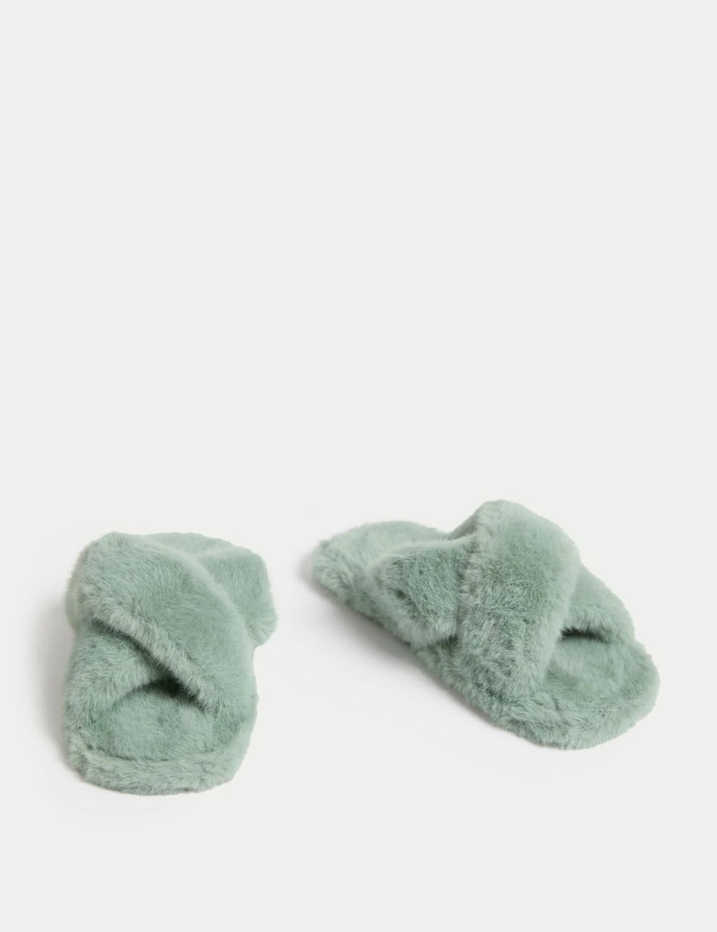 Take your lounging sessions to the next level with these slider slippers. They’re designed with open toes for maximum breathability and feature two wide crossover straps for a secure fit. The faux fur fabric is soft and fluffy for a satisfyingly cosy feel. M&S Collection: easy-to-wear wardrobe staples that combine classic and contemporary styles.