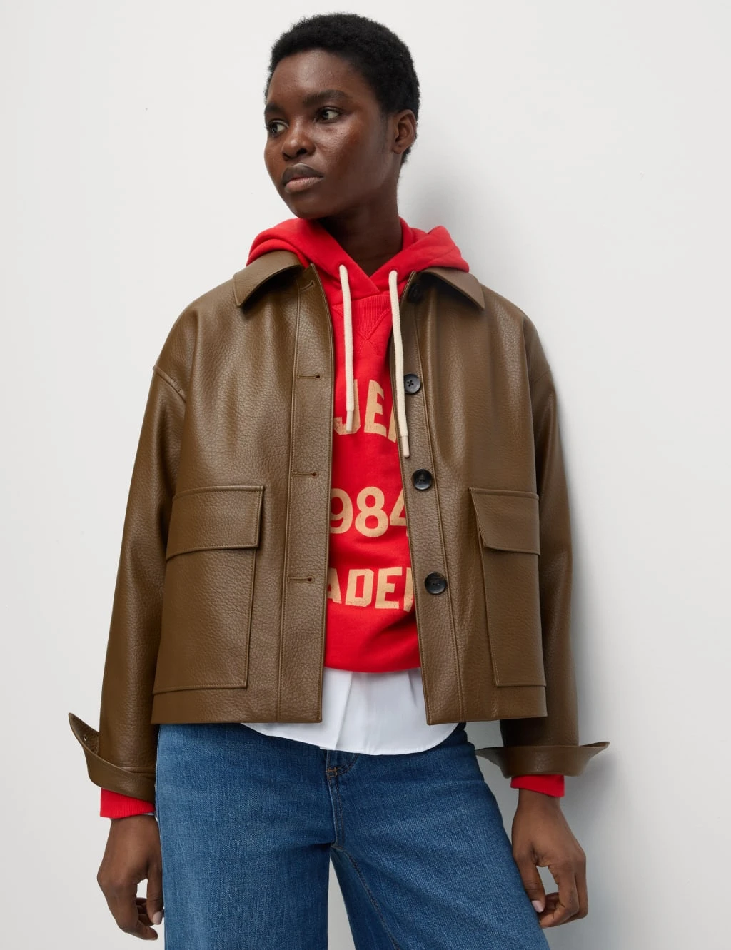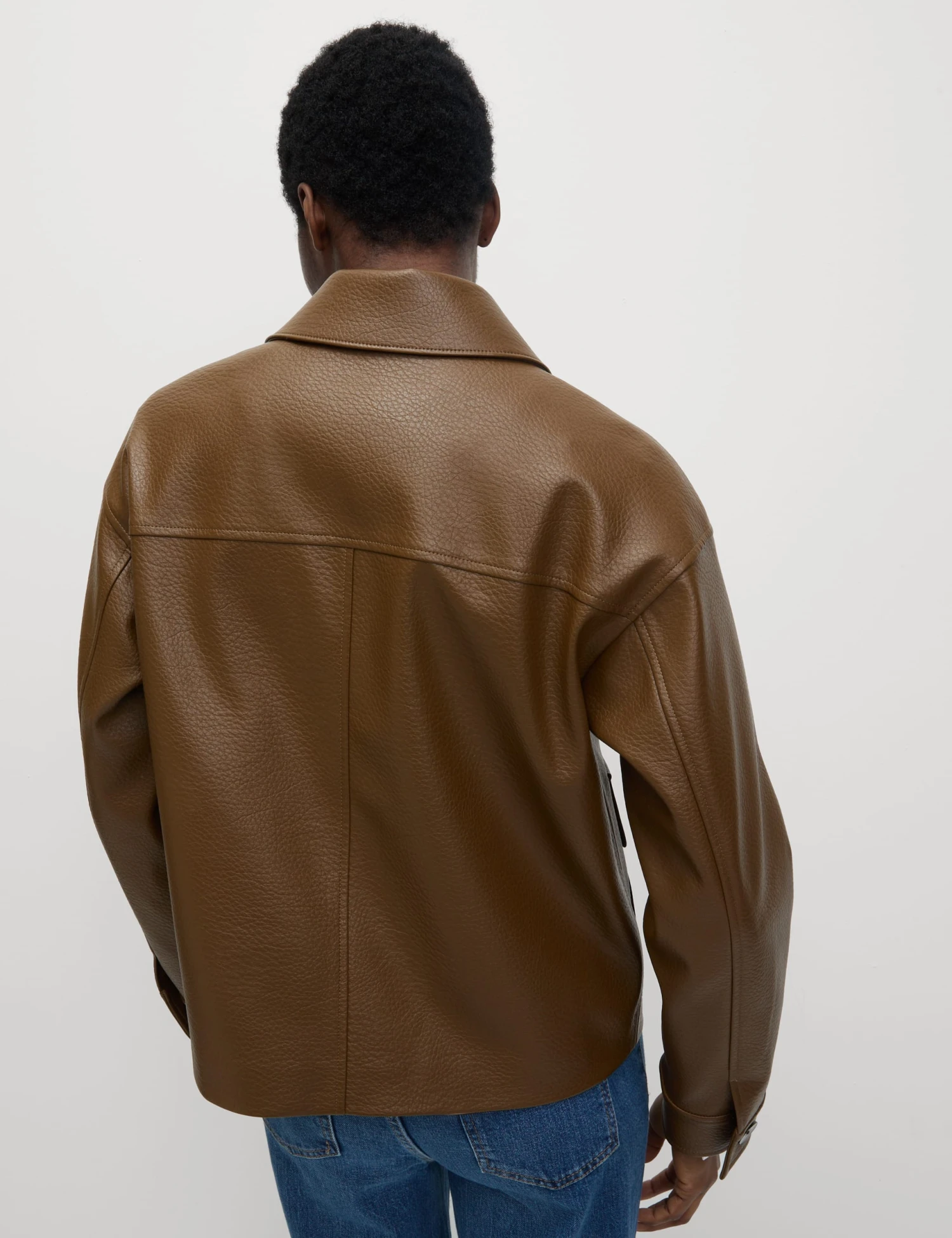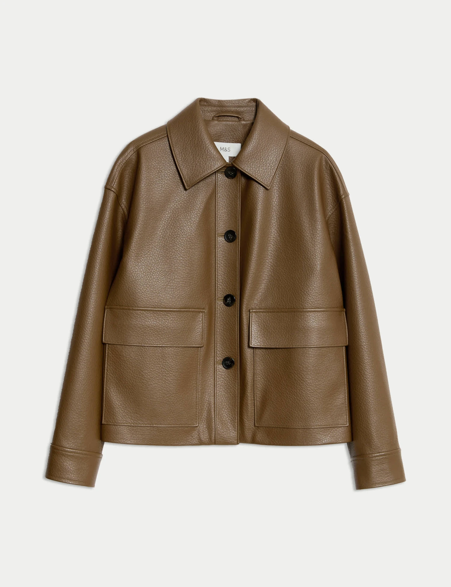This jacket combines sleek style with faux leather for a modern edge. The regular fit offers easy comfort, enhanced by clean lines and two practical patch pockets on the chest. A button-through front adds a polished finishing touch.. M&S Collection: easy-to-wear wardrobe staples that combine classic and contemporary styles.