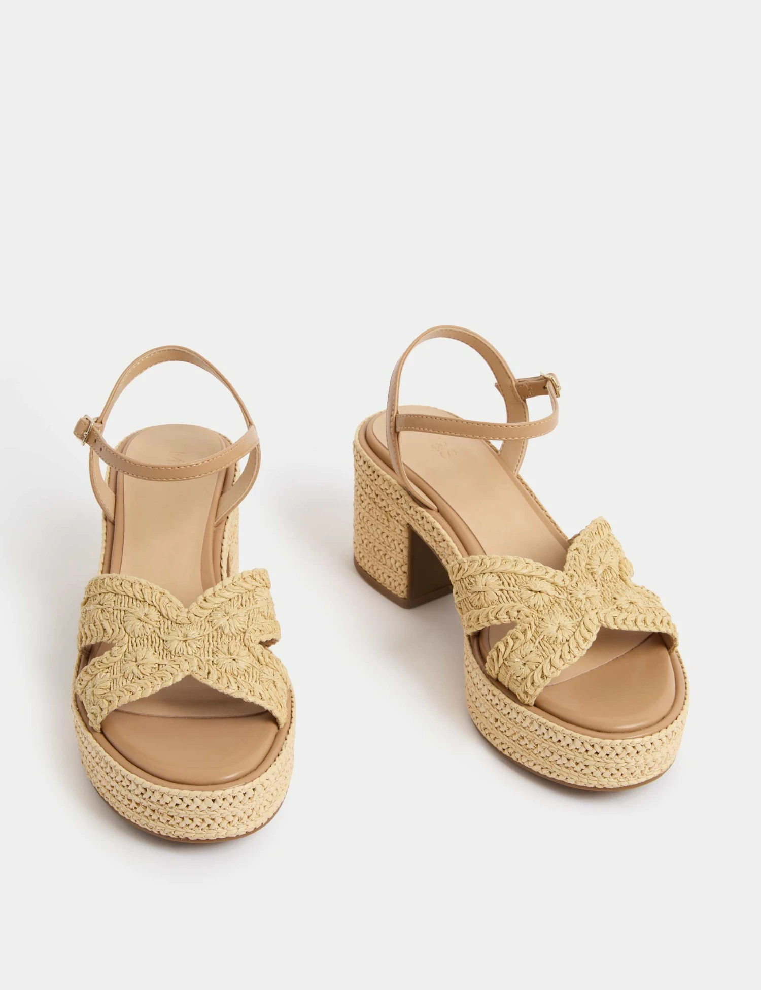 These platform sandals are a statement addition to your summer footwear collection. They have high block heels and an adjustable buckle fastening. The raffia fabric features a woven floral design for a fun, feminine finish. M&S Collection: easy-to-wear wardrobe staples that combine classic and contemporary styles.