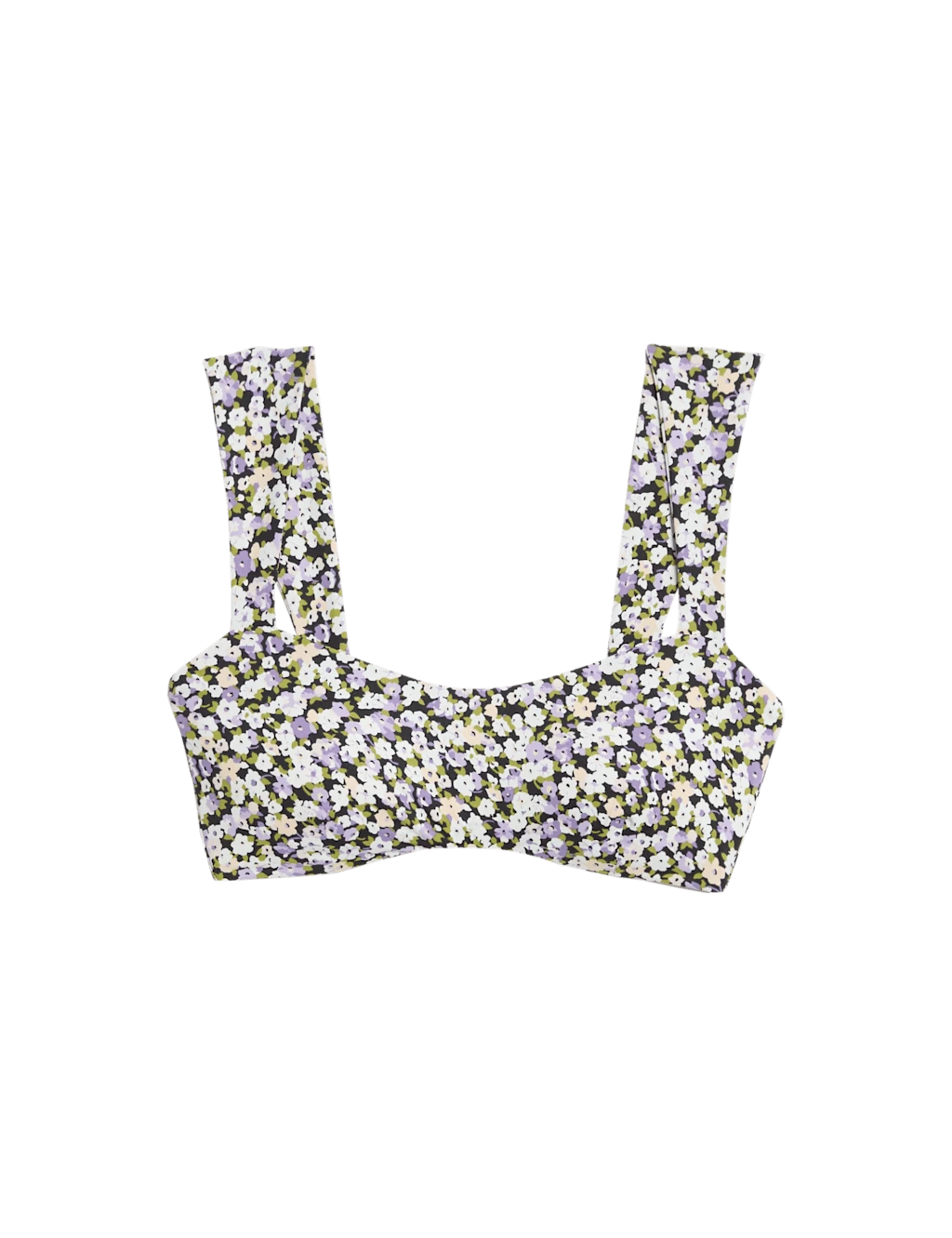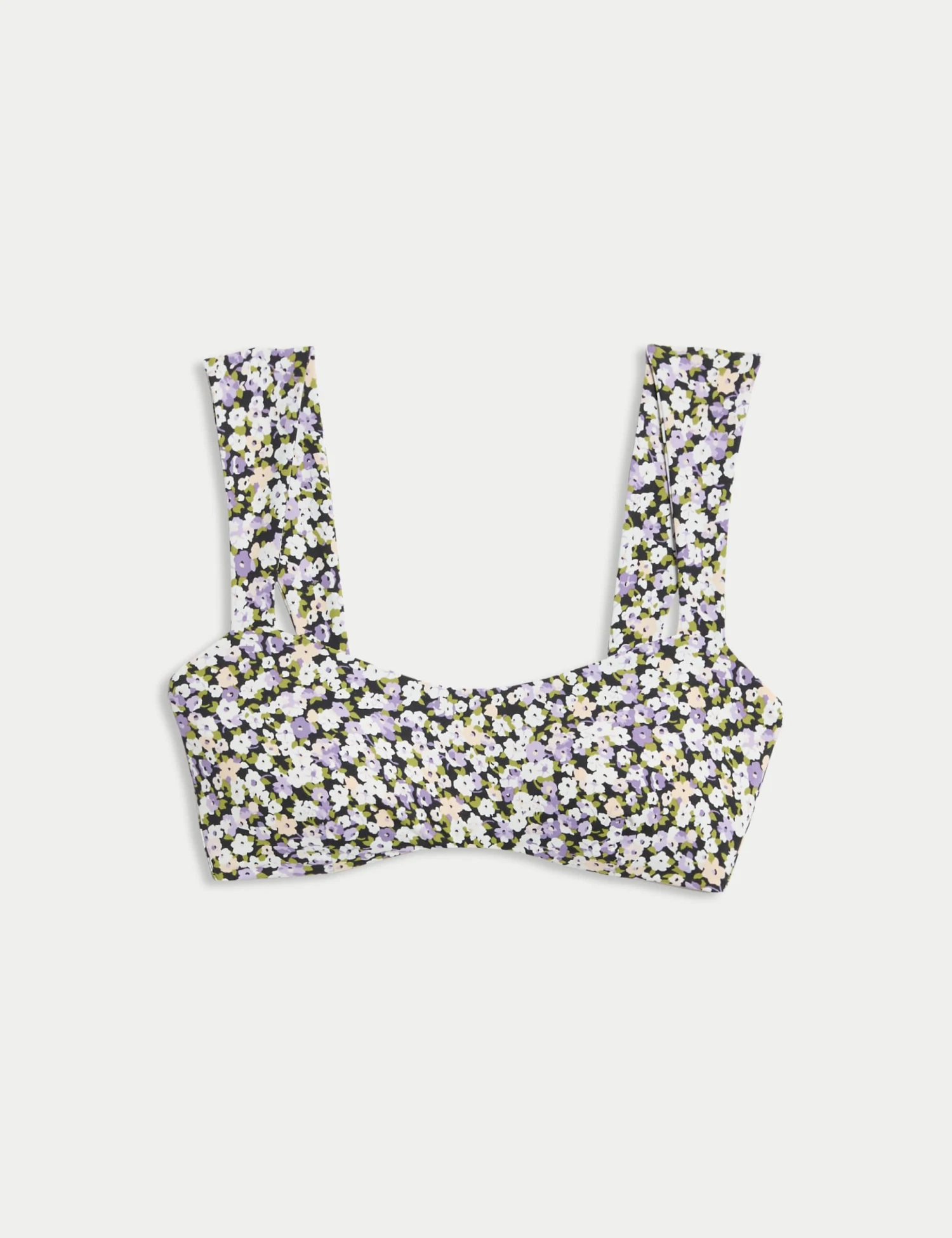 This floral print bikini top is a stylish choice for days by the pool. It’s designed in a regular fit, with a flattering sweetheart neckline and padded cups for extra shaping. The adjustable straps ensure comfortable wear, while a clasp fastening keeps it secure. Added stretch in the fabric offers easy movement in the water. M&S Collection: versatile styles in modern shapes with unique and playful details.