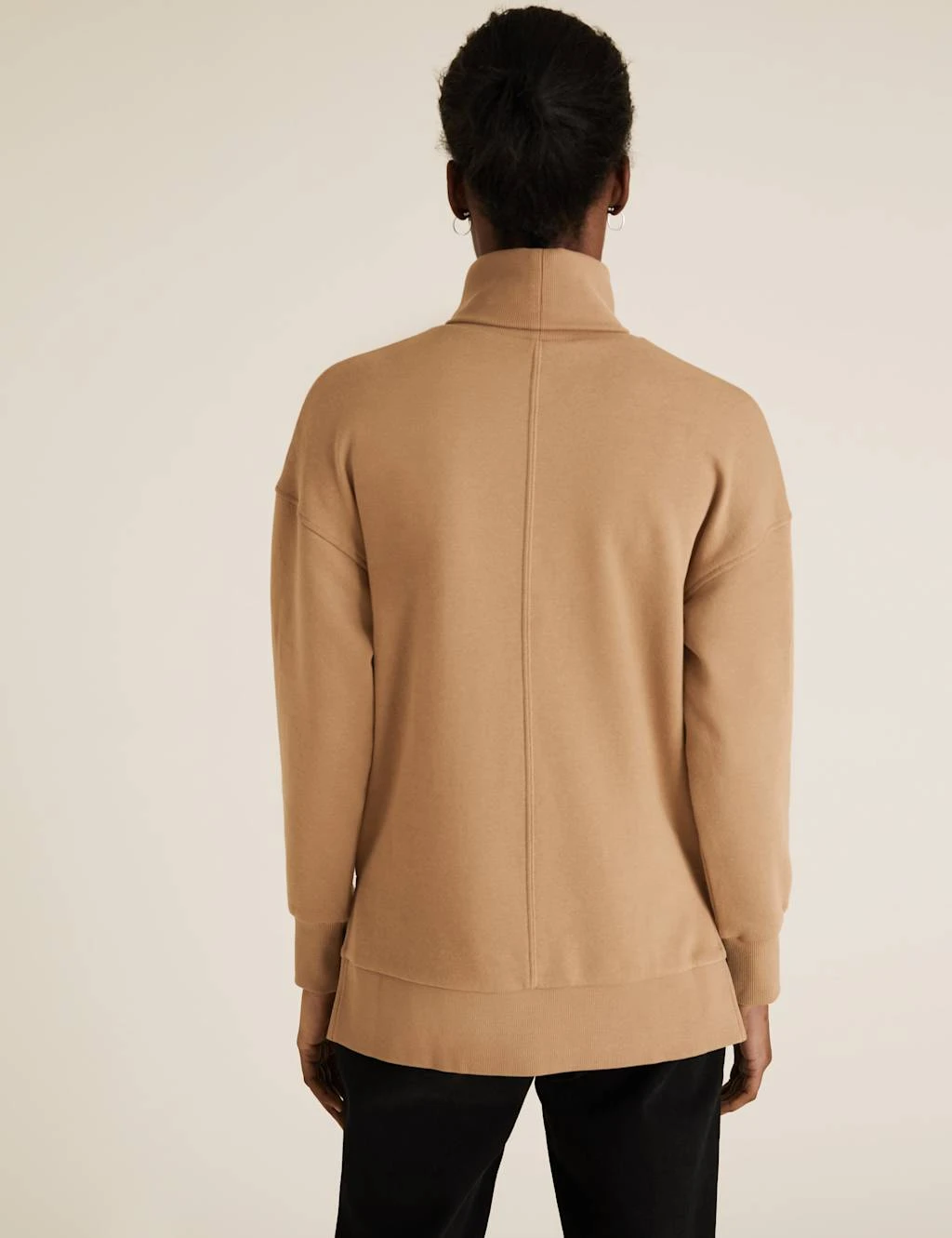 The brushed fleece fabric of this cotton-rich sweatshirt feels gloriously cosy on cooler days. Relaxed fit gives plenty of room, while the funnel neck shuts out chilly draughts. Complete with stylish dropped shoulders and a split hem. M&S Collection: easy-to-wear wardrobe staples that combine classic and contemporary styles.