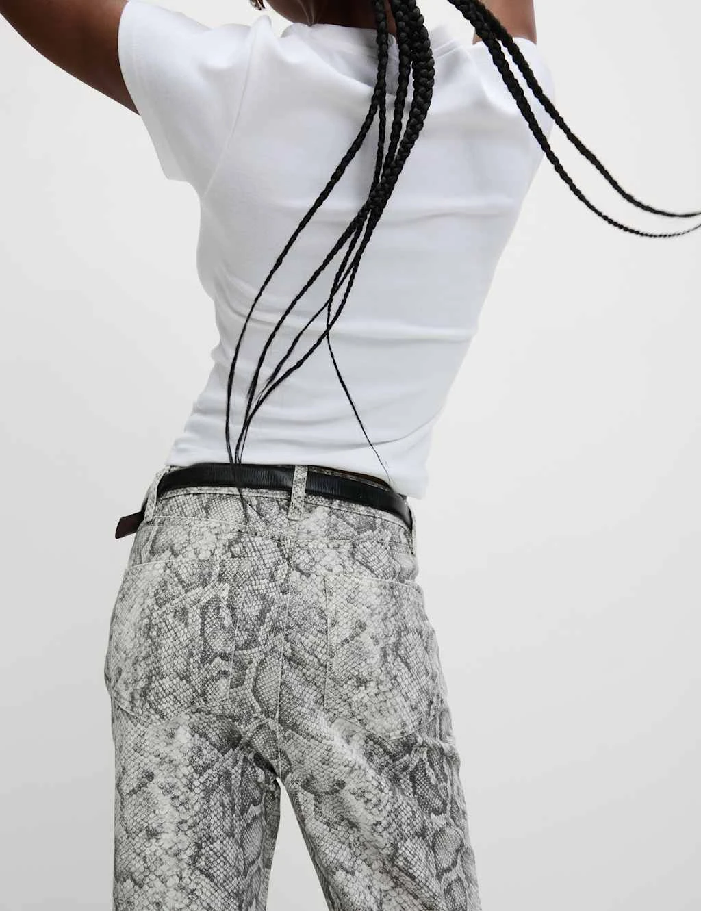 Channel the animal print trend in these statement jeans. They’re designed in a modern straight-leg fit with an all-over snake pattern. These casual staples are finished with a flattering high waist and an ankle-grazing length, making them perfect for showing off your heels. M&S Collection: easy-to-wear wardrobe staples that combine classic and contemporary styles.