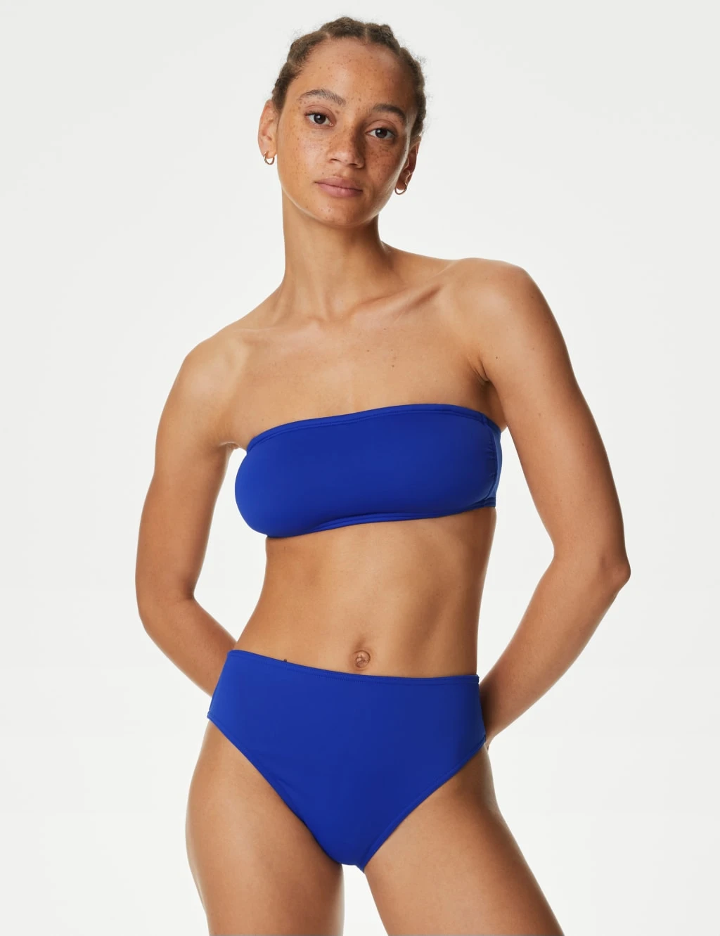These high-waisted bikini bottoms are as flattering as they are comfy. High-leg style, with added stretch for comfort. The material has a chlorine-resistant finish to help your swimwear last longer. Sun Smart UPF50+ offers extra protection against harmful UV rays.