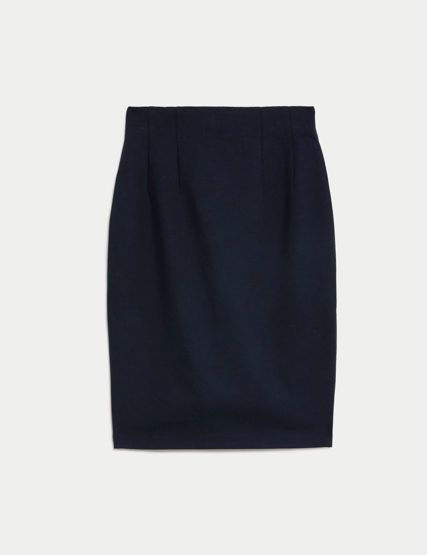 This jersey pencil skirt is a versatile piece to add to your wardrobe. It’s made to a knee-length design with an elasticated high waist for a comfortable fit. The pull-on style is complete with a small back vent and darts at the front and back for a flattering shape. M&S Collection: easy-to-wear wardrobe staples that combine classic and contemporary styles.