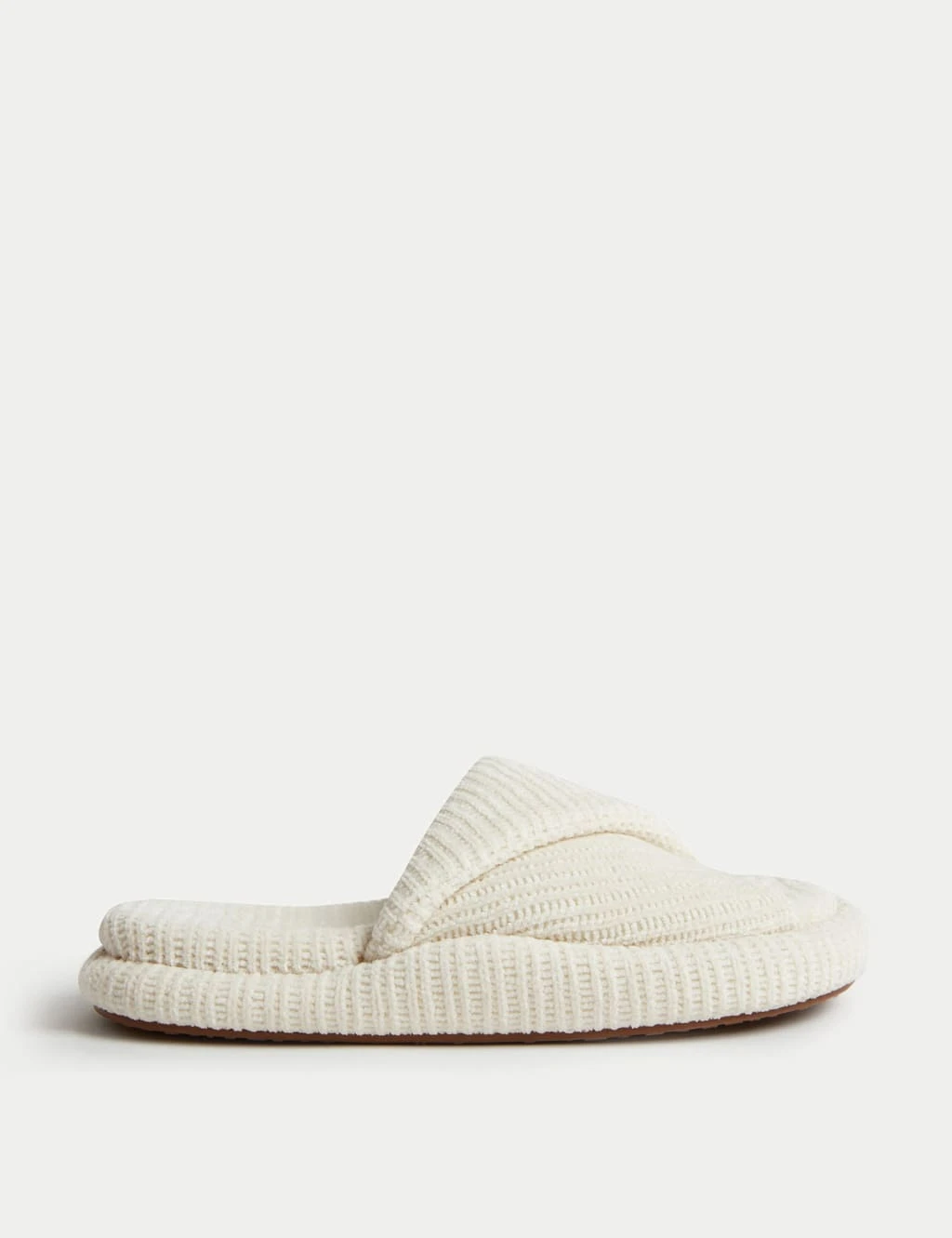 These mule slippers are made from cosy knitted fabric for a comfy feel. They have a classic slip-on design and flat heels, with a crossover detail on the upper.