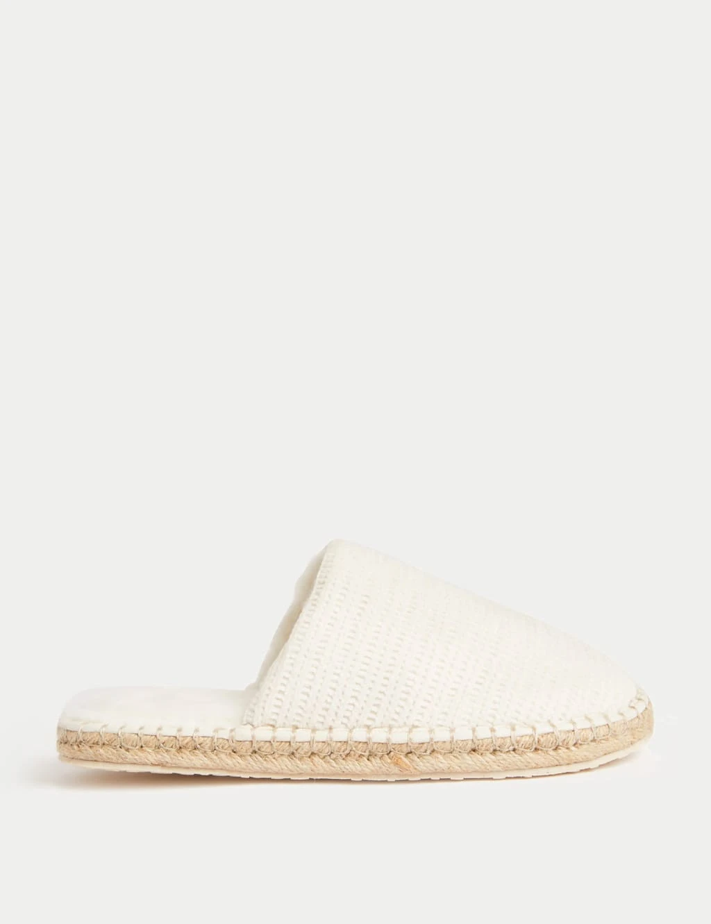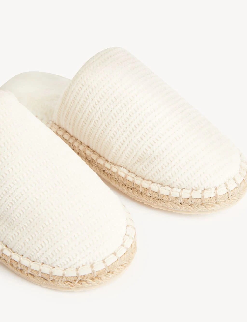 These knitted mule slippers bring a cosy touch to at-home outfits. They have an on-trend flat espadrille sole and are a slip-on design for easy wear. With a faux fur lining for a toasty feel and antibacterial Fresh Feet technology to combat odours. M&S Collection: easy-to-wear wardrobe staples that combine classic and contemporary styles.