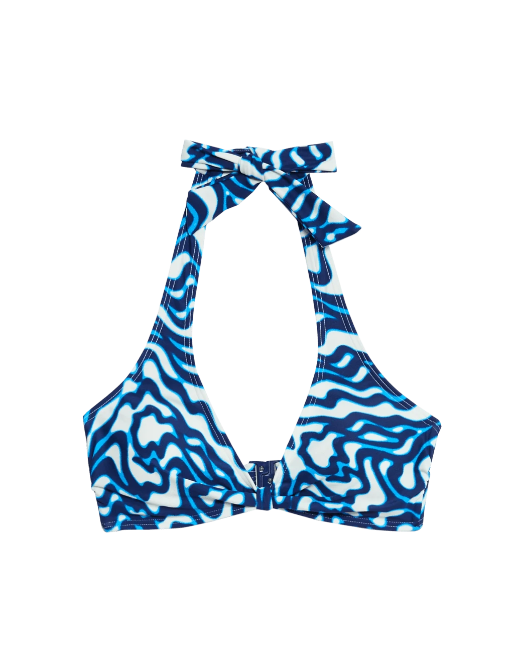 Swim (or sunbathe) in style in this plunge bikini top, featuring a vibrant print for a statement look. It’s designed in a regular fit, with a halterneck shape that fastens with a tie and a back clasp. The knot detailing at the front adds a stylish touch, while removable padding provides extra support. Our Sun Smart UPF50+ technology helps to protect against harmful UV rays. M&S Collection: versatile styles in modern shapes with unique and playful details.