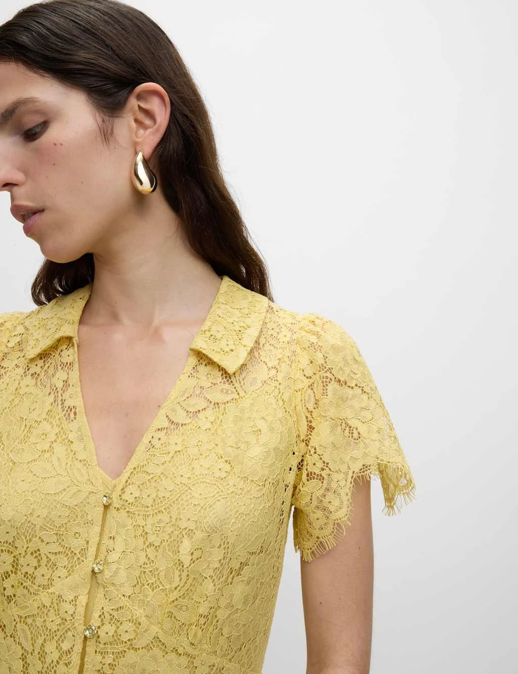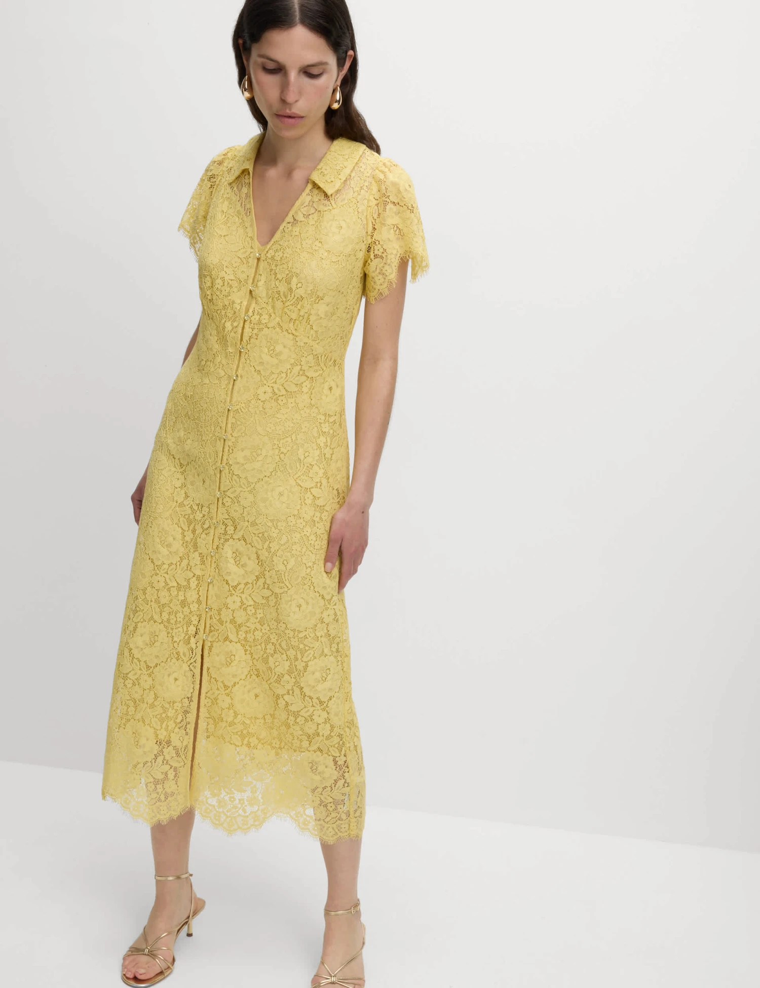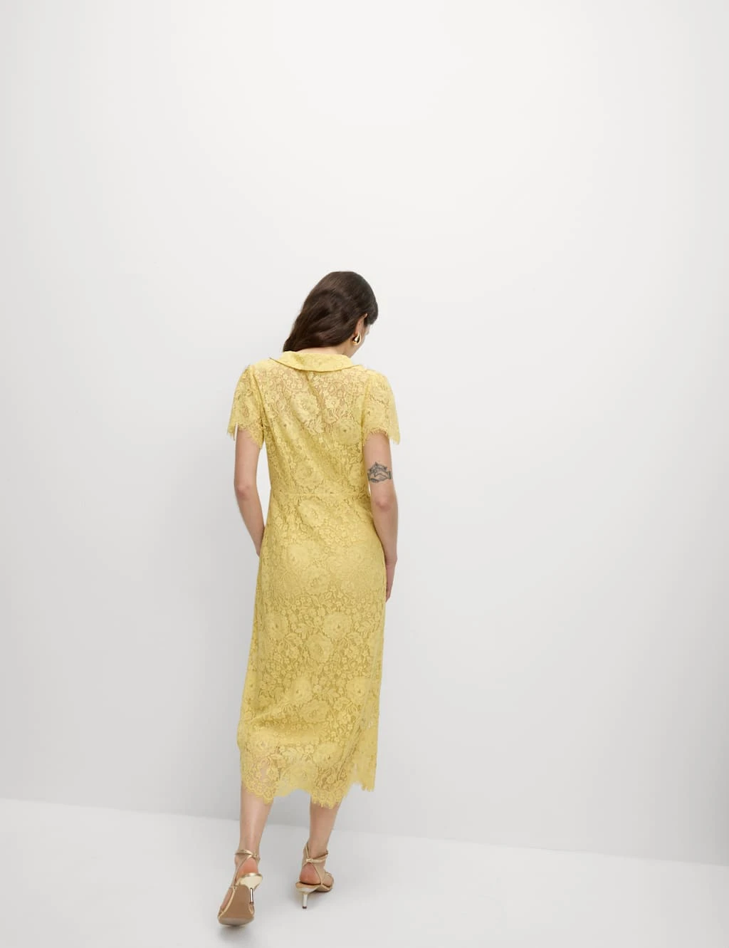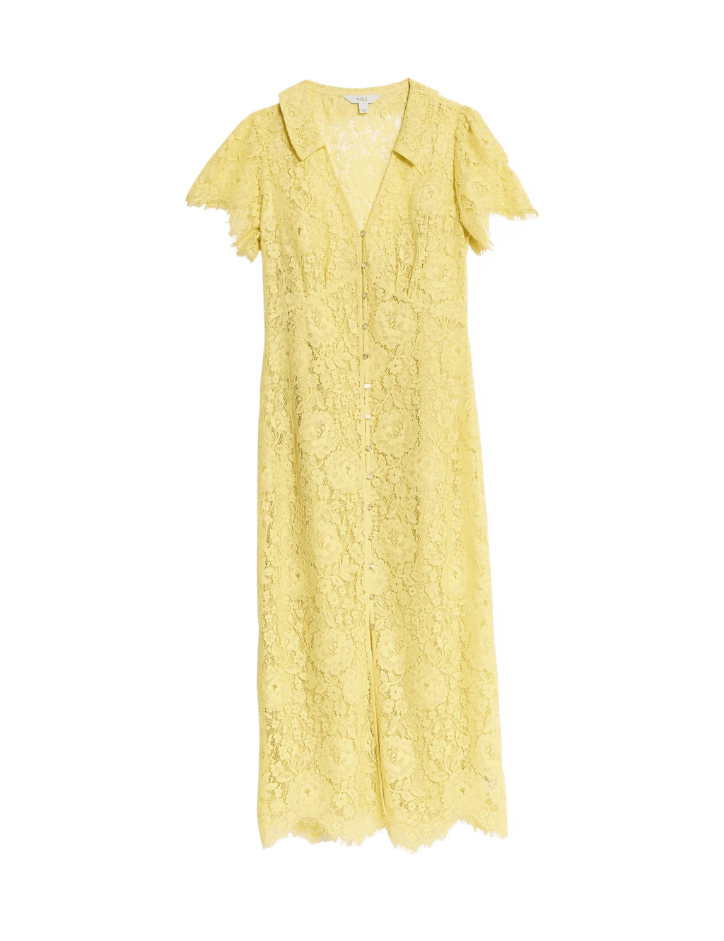 This gorgeous lace tea dress is an elegant addition to your wardrobe. Regular fit, with a neat collared neckline and airy short sleeves. The piece is lined for comfort. A button-through fastening brings a smart finish. M&S Collection: easy-to-wear wardrobe staples that combine classic and contemporary styles.